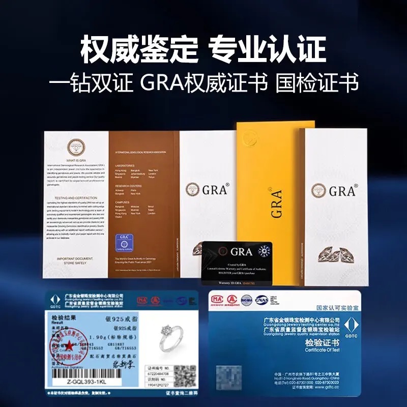 莫桑钻戒女正品进口求婚六爪钻石925纯银一克拉情侣戒指18K金订婚