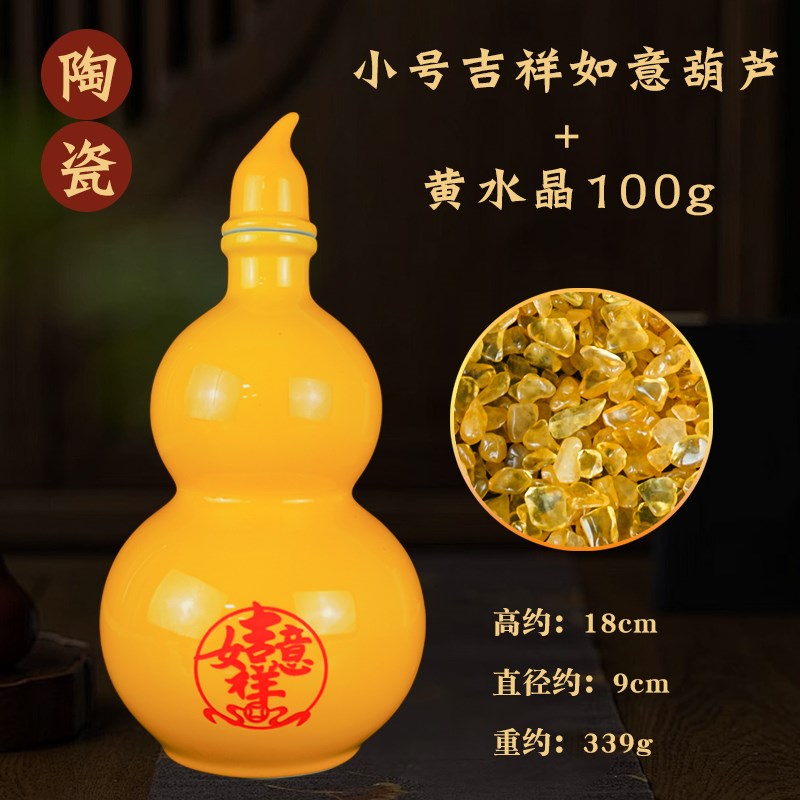 黄色陶瓷葫芦摆件开口空心瓶大小号福H字如意家居客厅酒柜装饰品