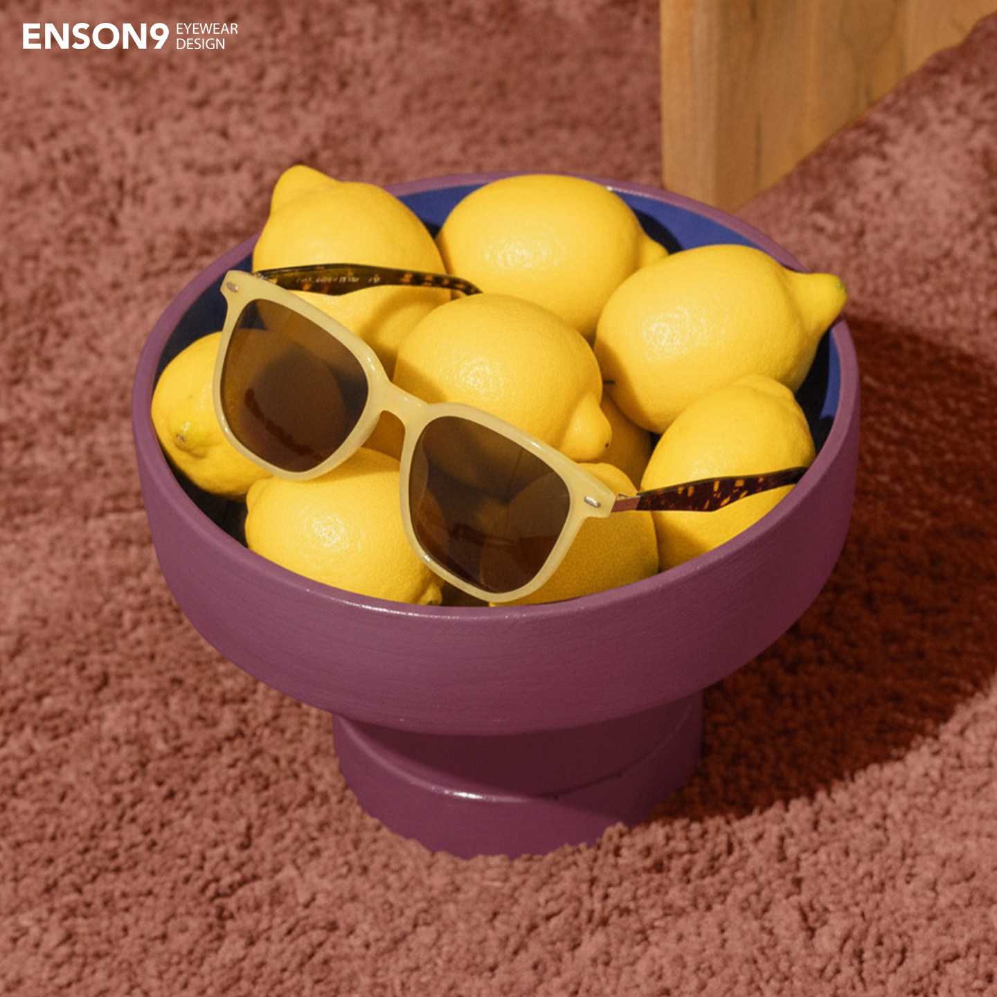 enson9多巴胺柠檬黄色板材太阳镜潮男女 复古拼色大方框偏光墨镜