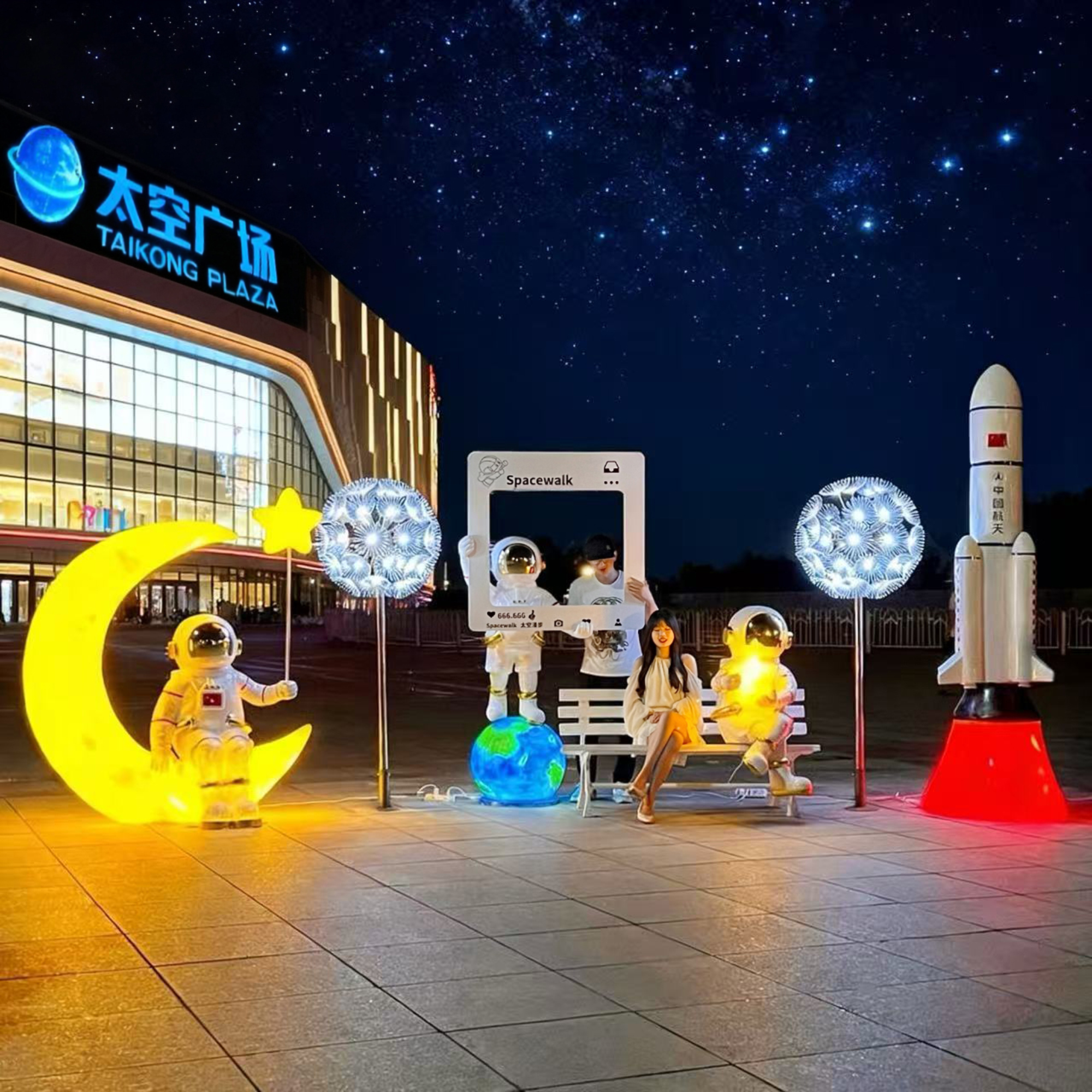爆款太空人宇航员玻璃钢雕塑景区商场航天模型科技馆网红打卡摆件