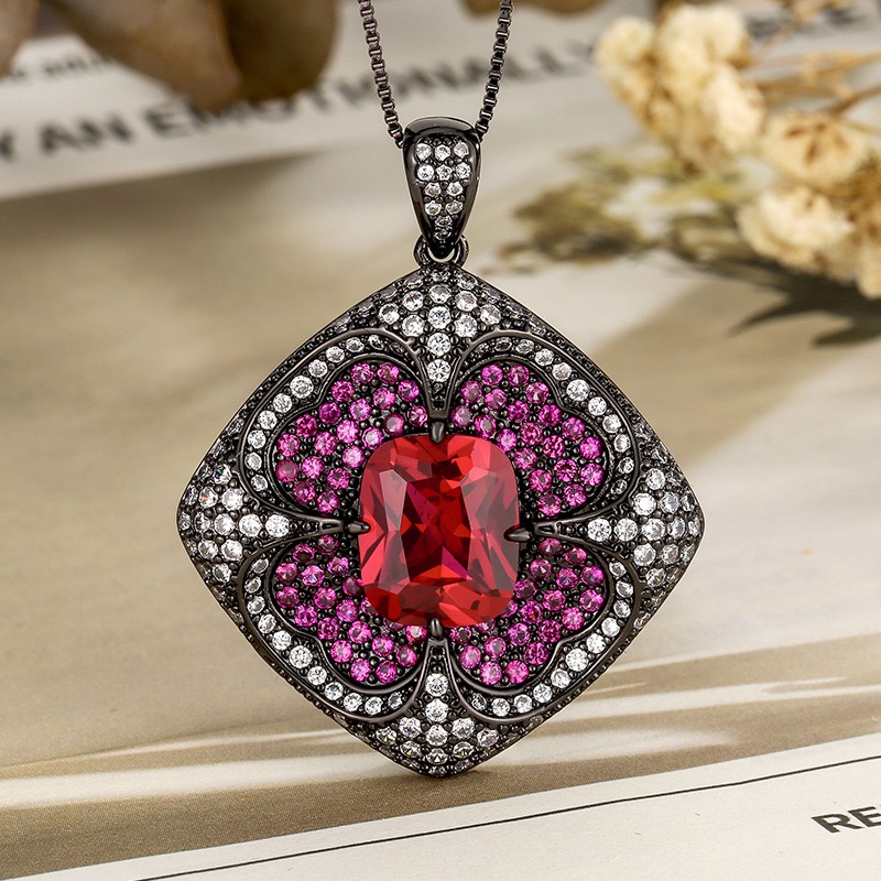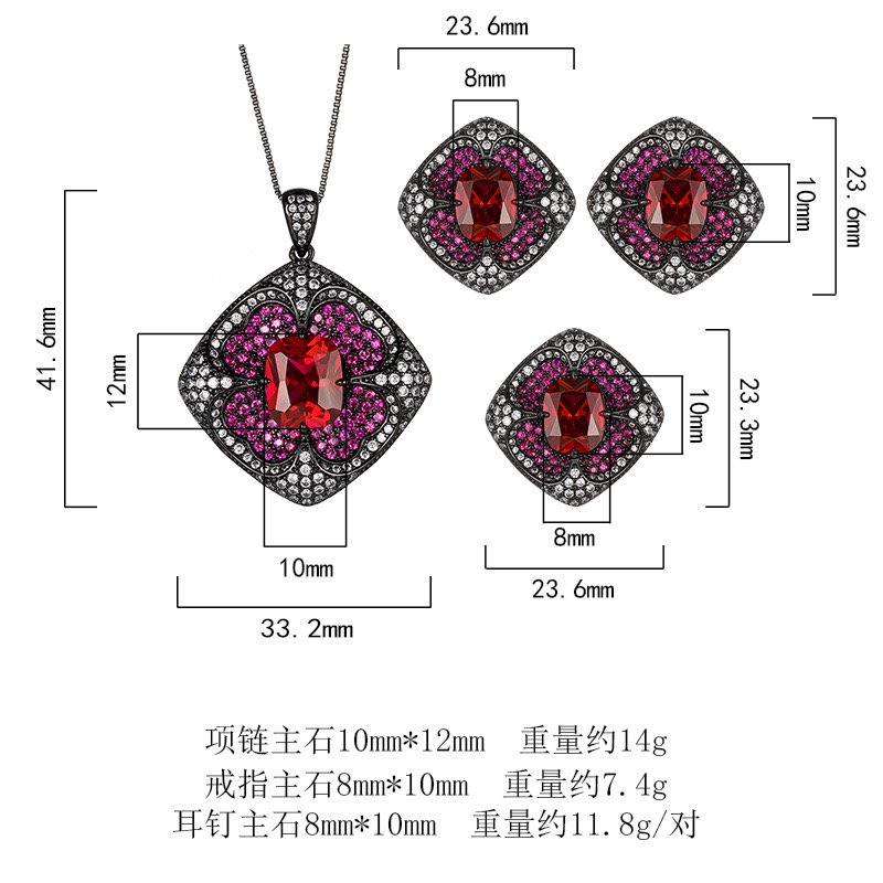 新款铜镀枪黑色仿彩宝镶钻吊坠女款项链仿红刚玉满钻耳钉开口戒指