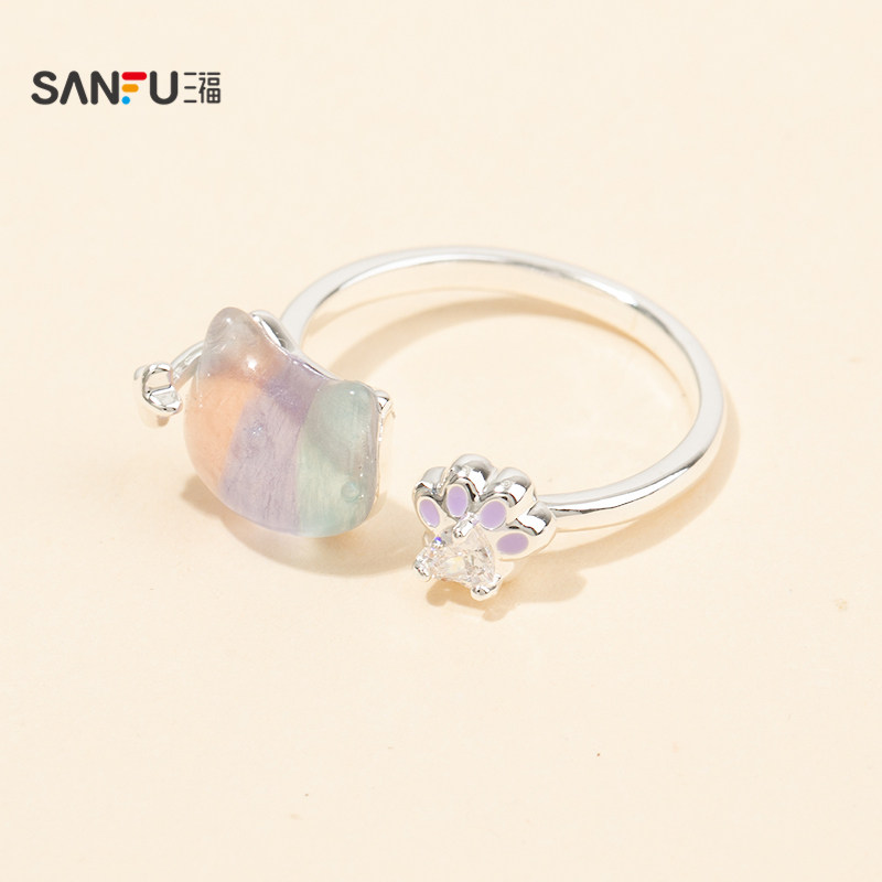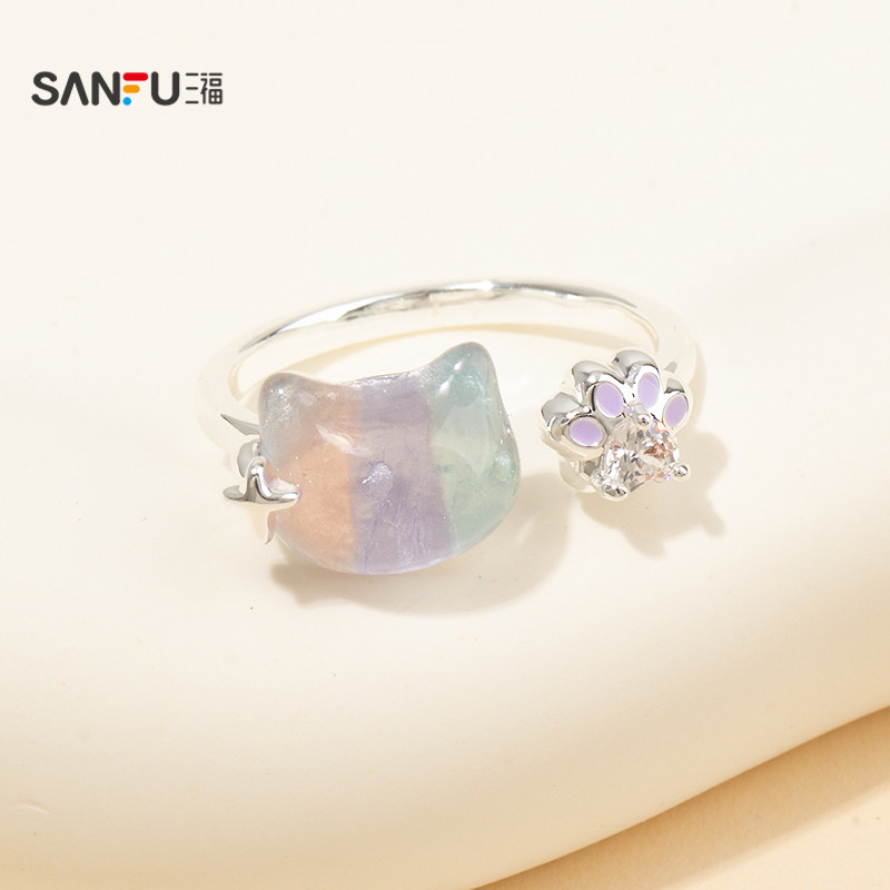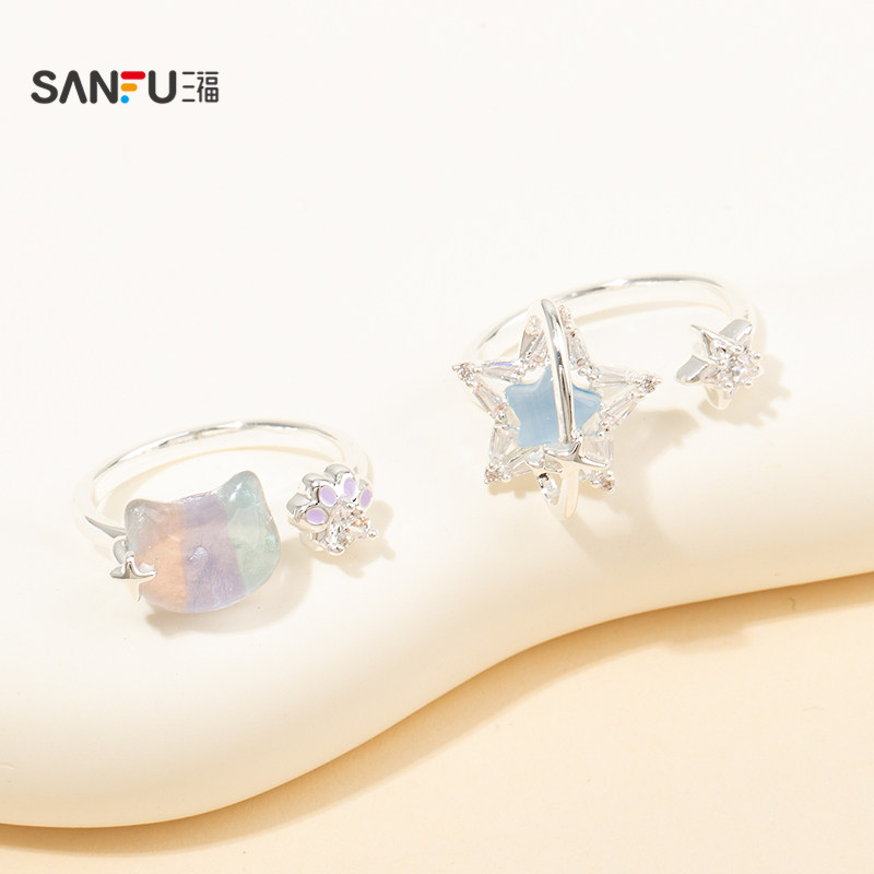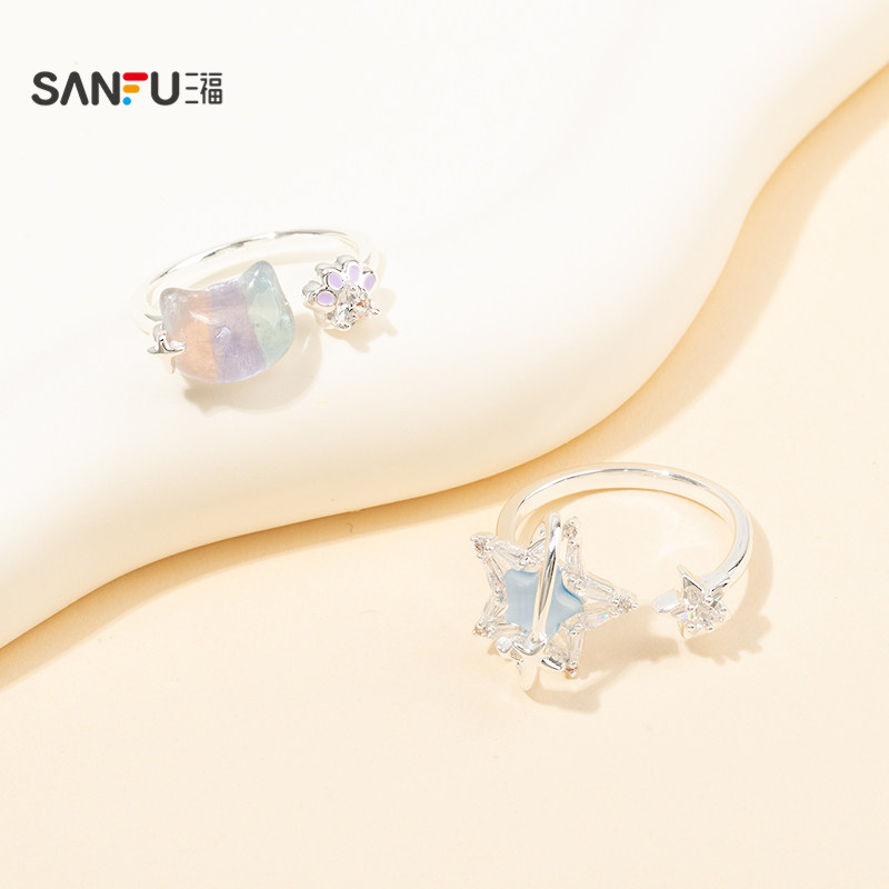 三福清新幻彩星际戒指单只装 个性时尚手饰首饰指环饰品852383