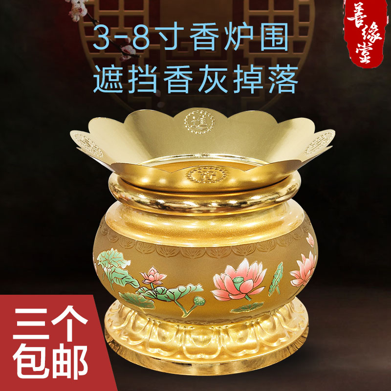 善缘堂合金香炉围招财进宝围炉接灰莲花罩家用香灰托香炉罩