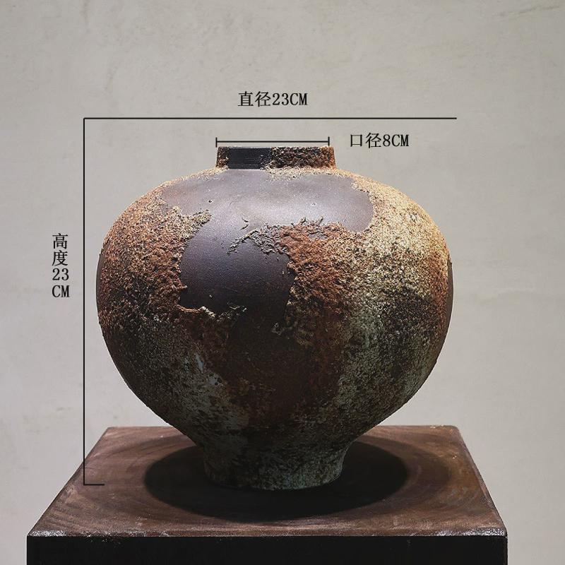 复古民宿粗侘寂风新中式禅意摆件客厅花瓶陶瓷茶室玄关插干花桌面
