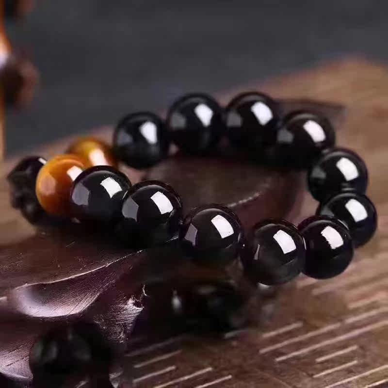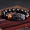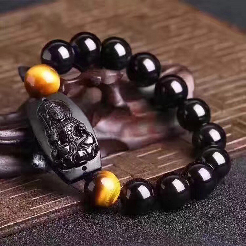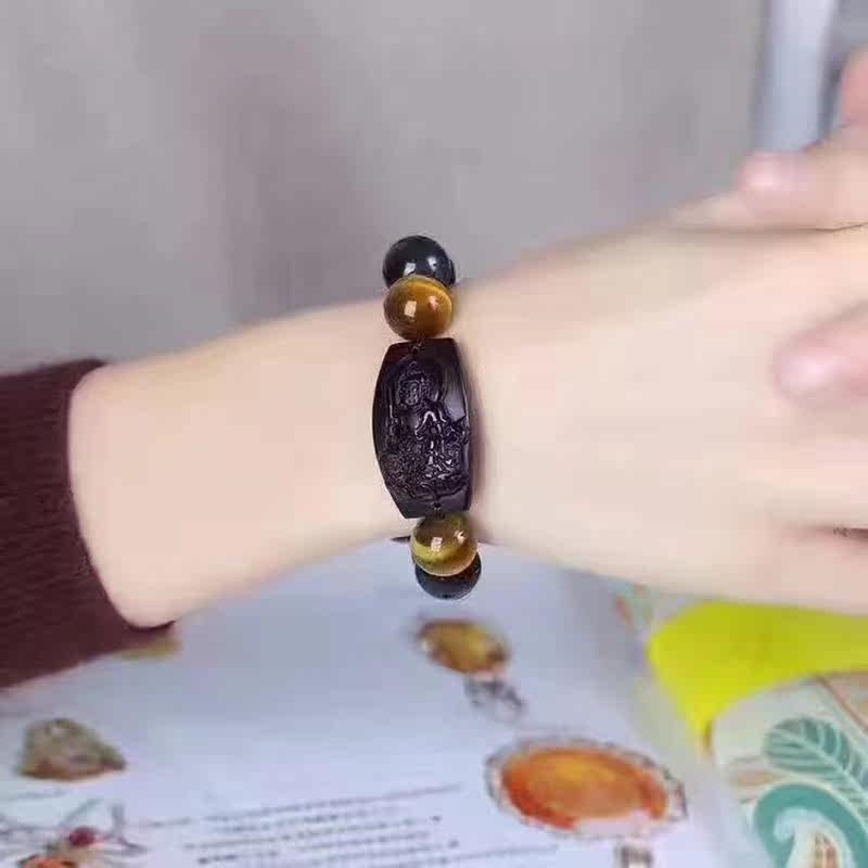 天然黑曜石不动尊手链牌 属鸡守护神手串 生肖鸡本命佛手链