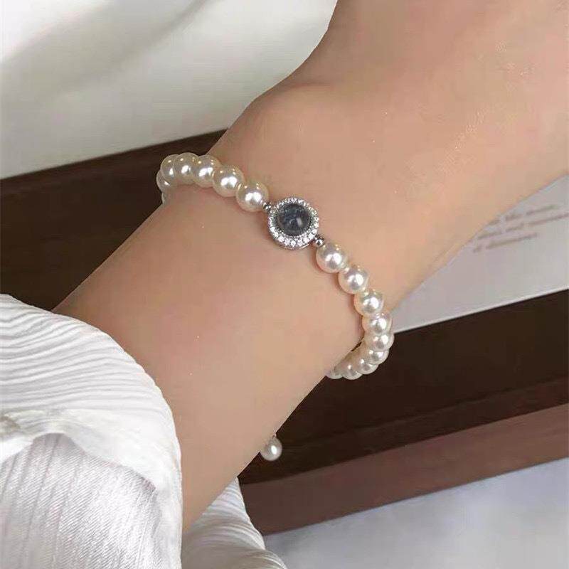 人鱼的眼泪海蓝宝色仿珍珠串珠手链年新款轻奢感小众设计感手链