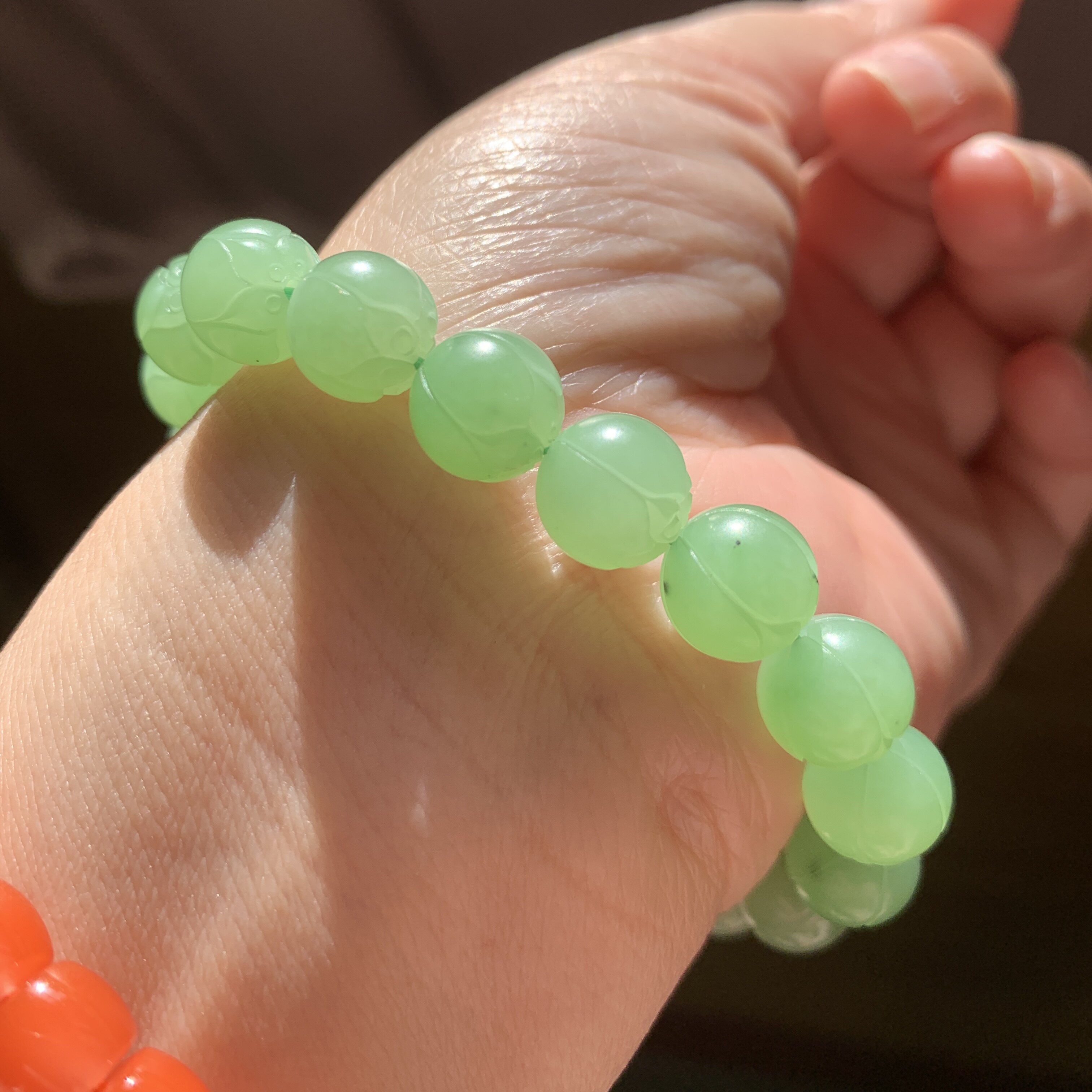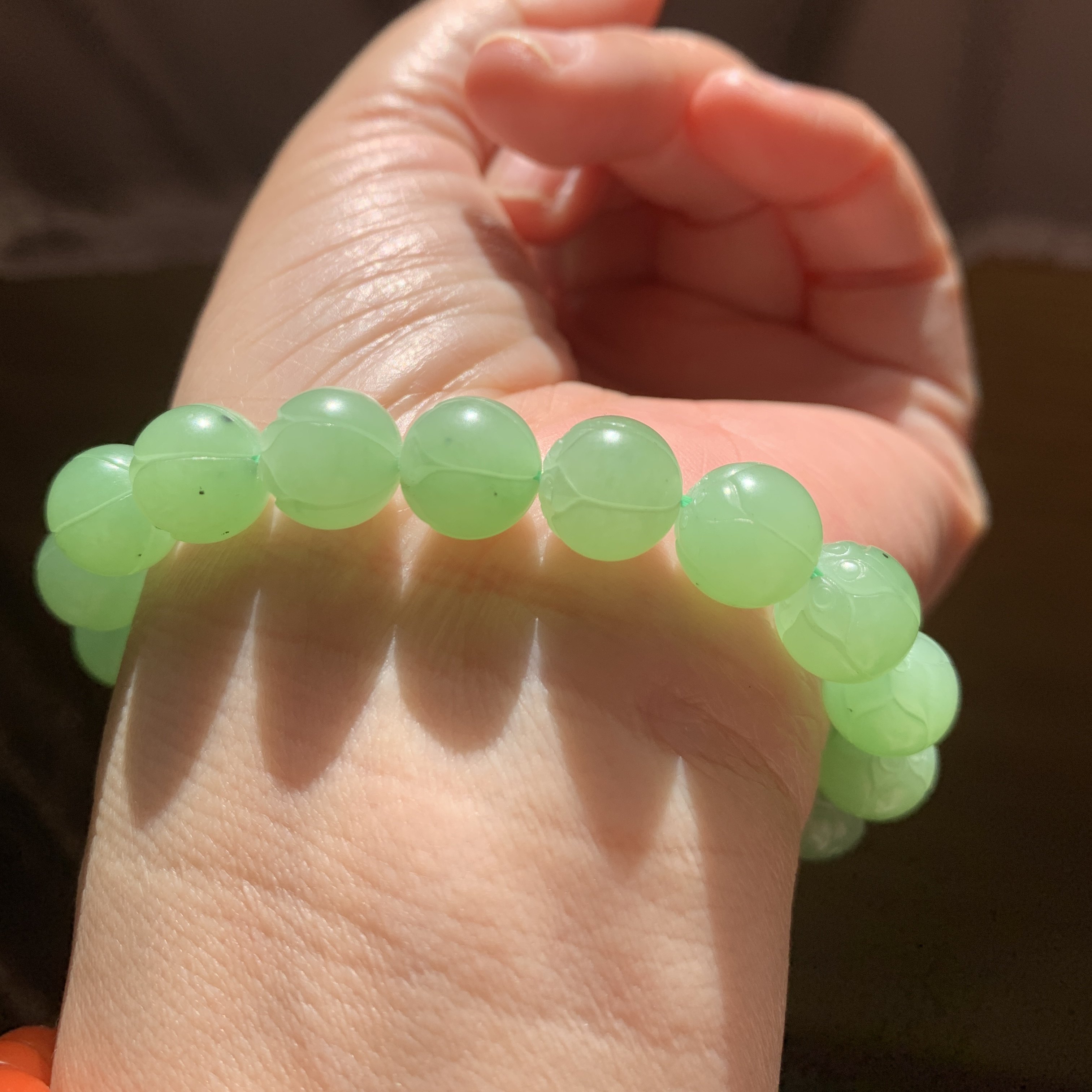 和田玉碧玉苹果绿手链乌兰海苹果绿手工雕刻莲花珠手串手钏10mm