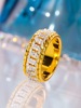 18K黄金D色莫桑石满钻奢华戒指简约小众镶嵌指环纯银时尚精致气质