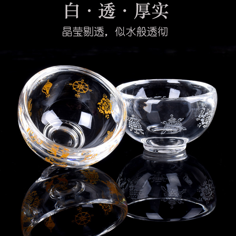 加厚水晶吉祥八宝碗特小号供杯圣水杯供碗家用佛堂净水杯酥油灯座
