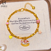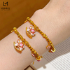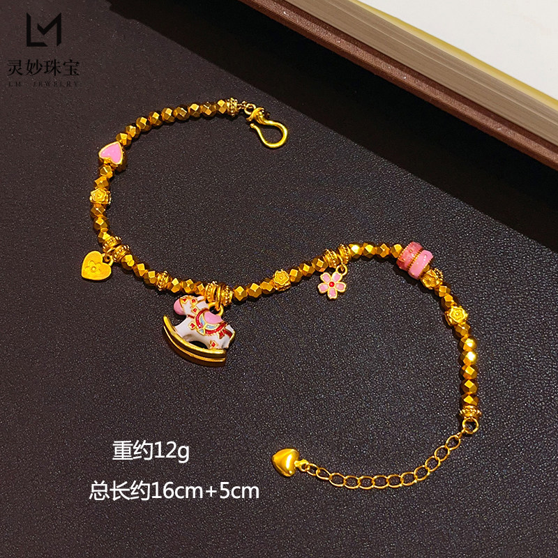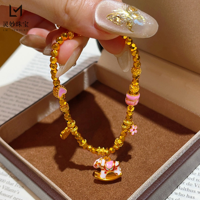 新中式古法沙金珐琅彩摇摇马桃花蹦迪珠手链粉桃花彩圈手串送女友