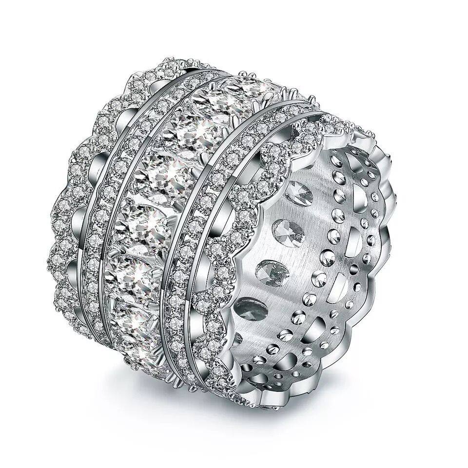 T公馆满钻多层锆石戒指欧美风气质复古蕾丝花边时尚百搭食指指环