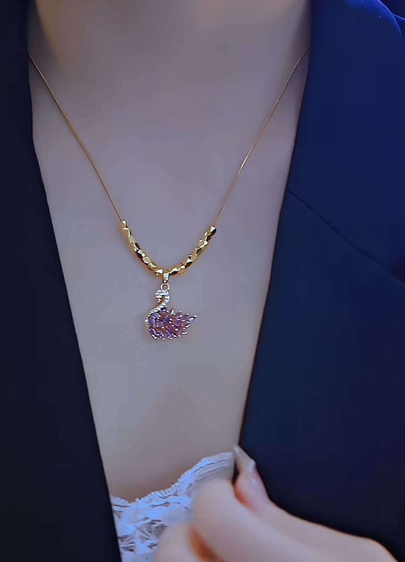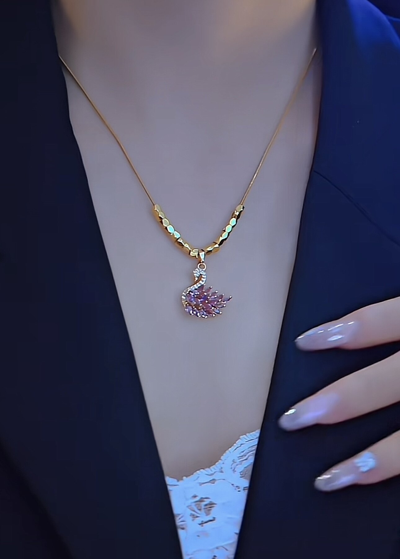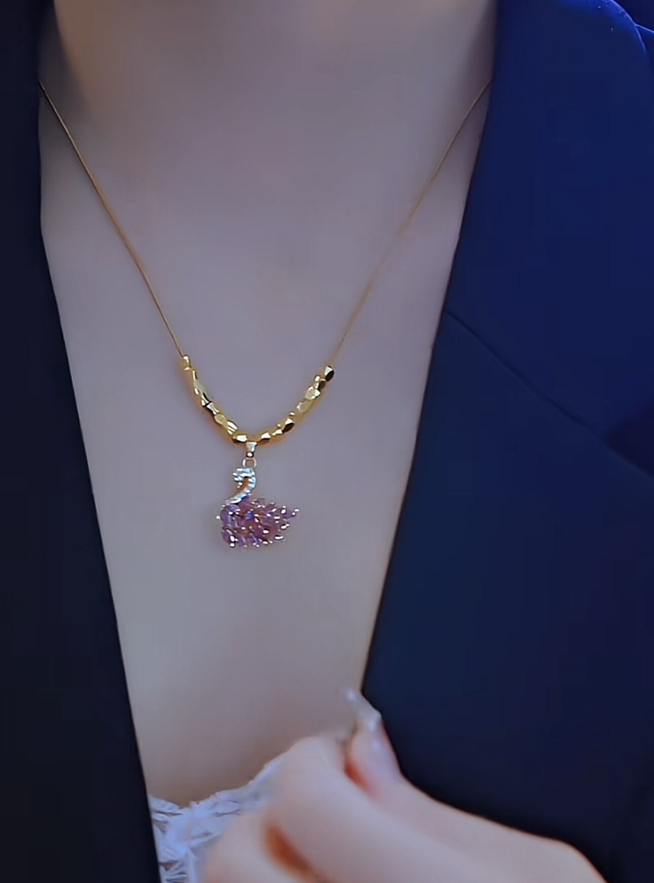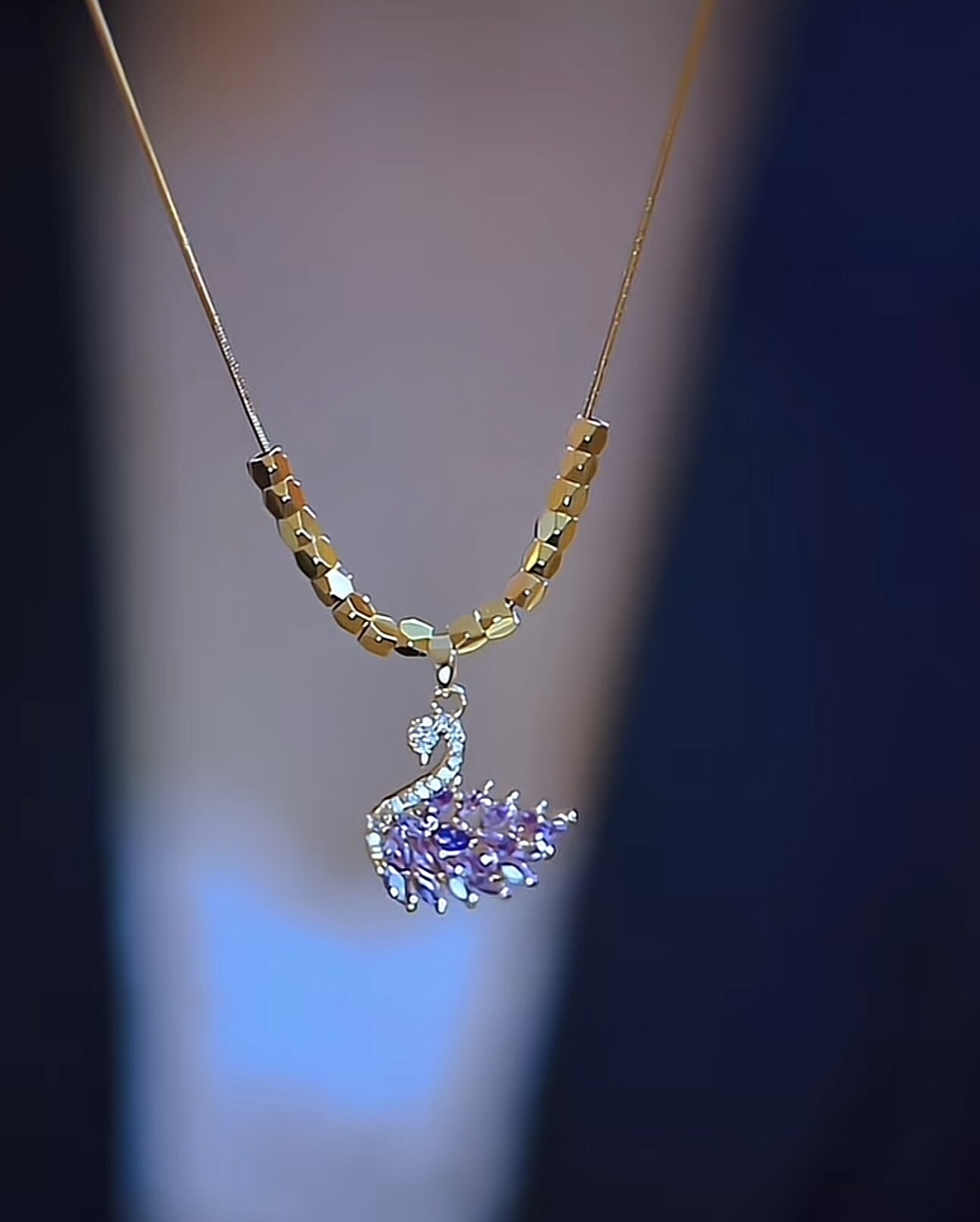 新款紫色天鹅吊坠项链女轻奢小众高级感锁骨链送女友闺蜜生日礼物