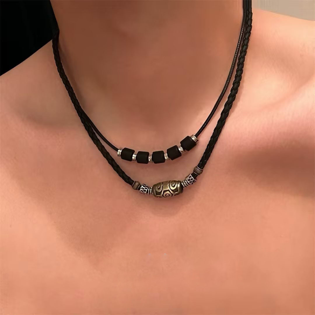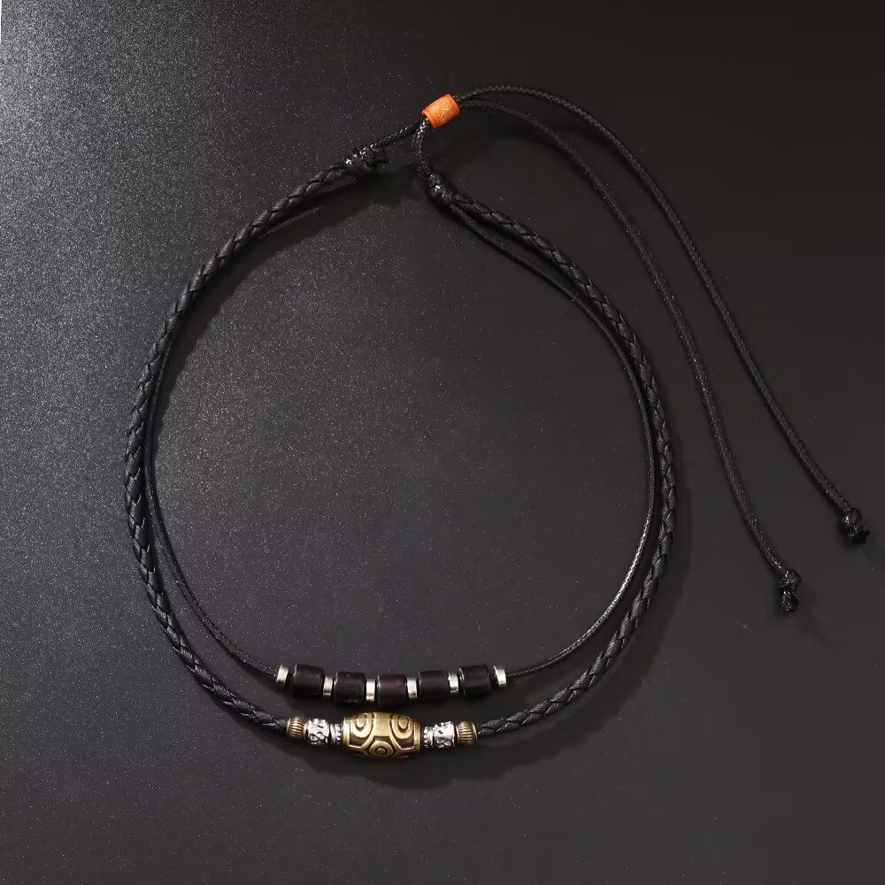 天珠藏青复古项链男可调节编织蜡绳古色吊坠锁骨链高级感配饰饰品