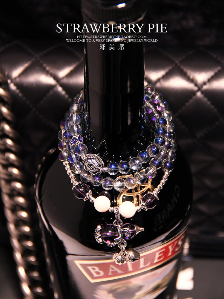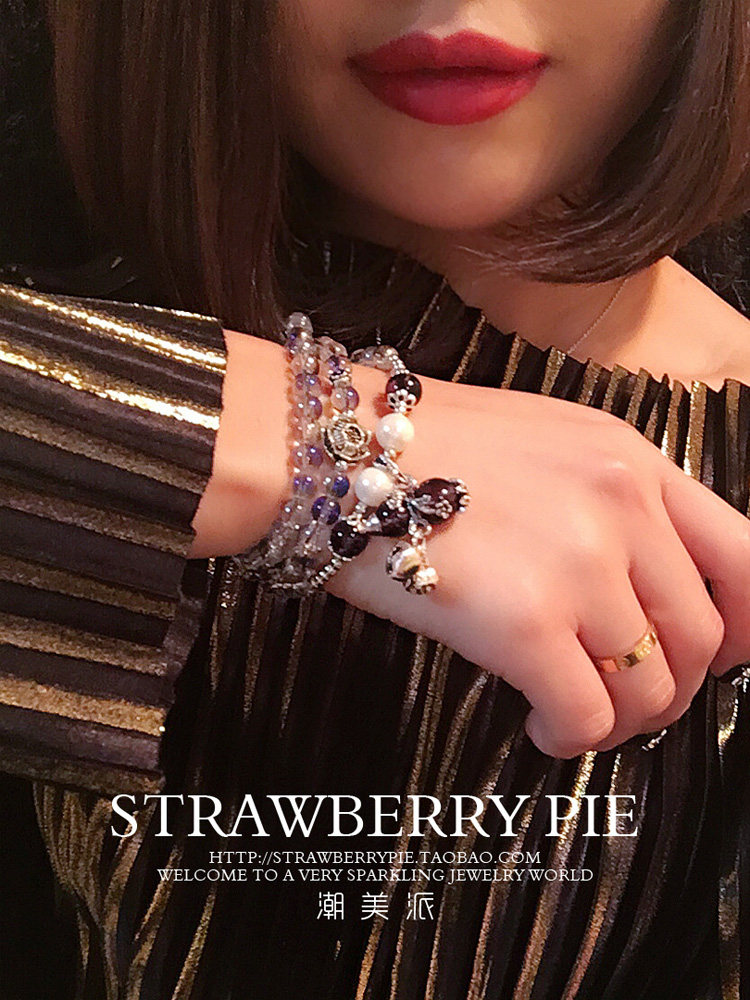 潮美派手钏手链幻彩紫色水晶葫芦铃铛珍珠手串手镯潮流饰品