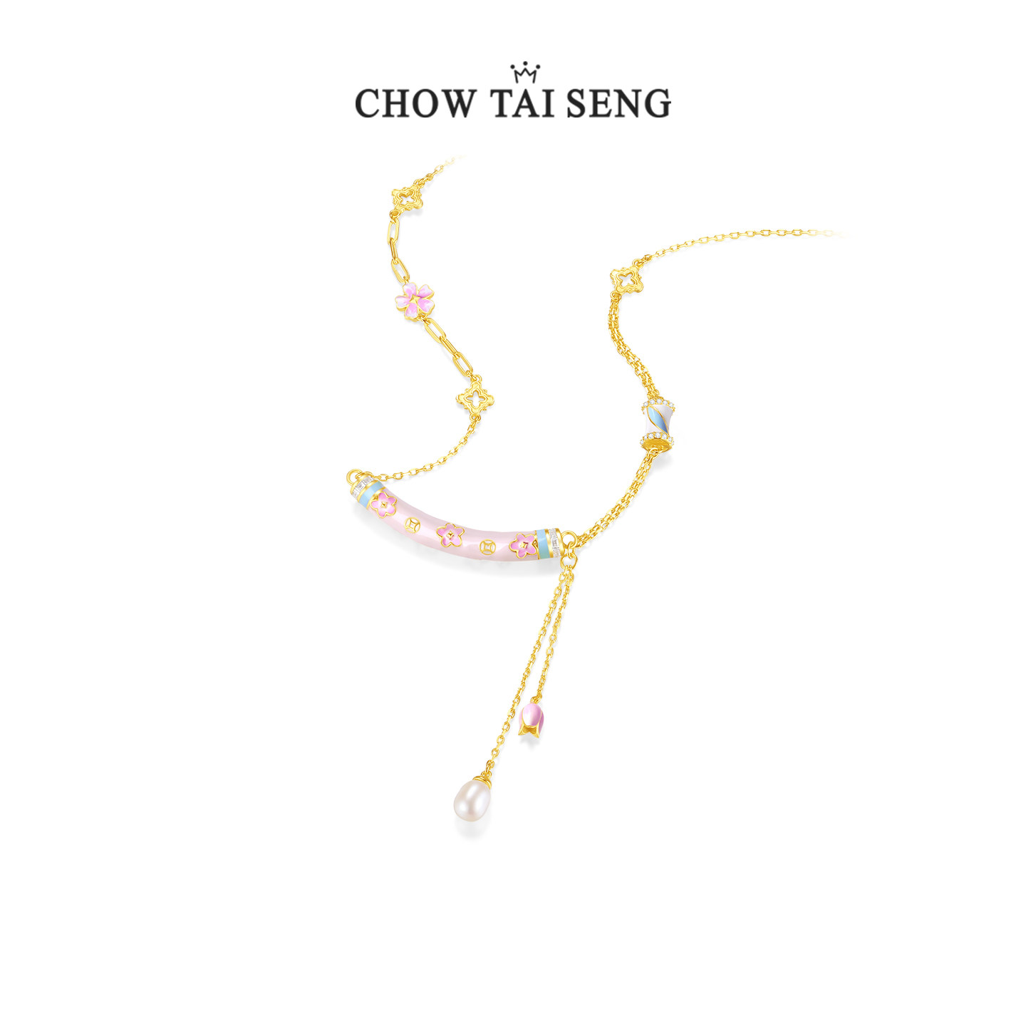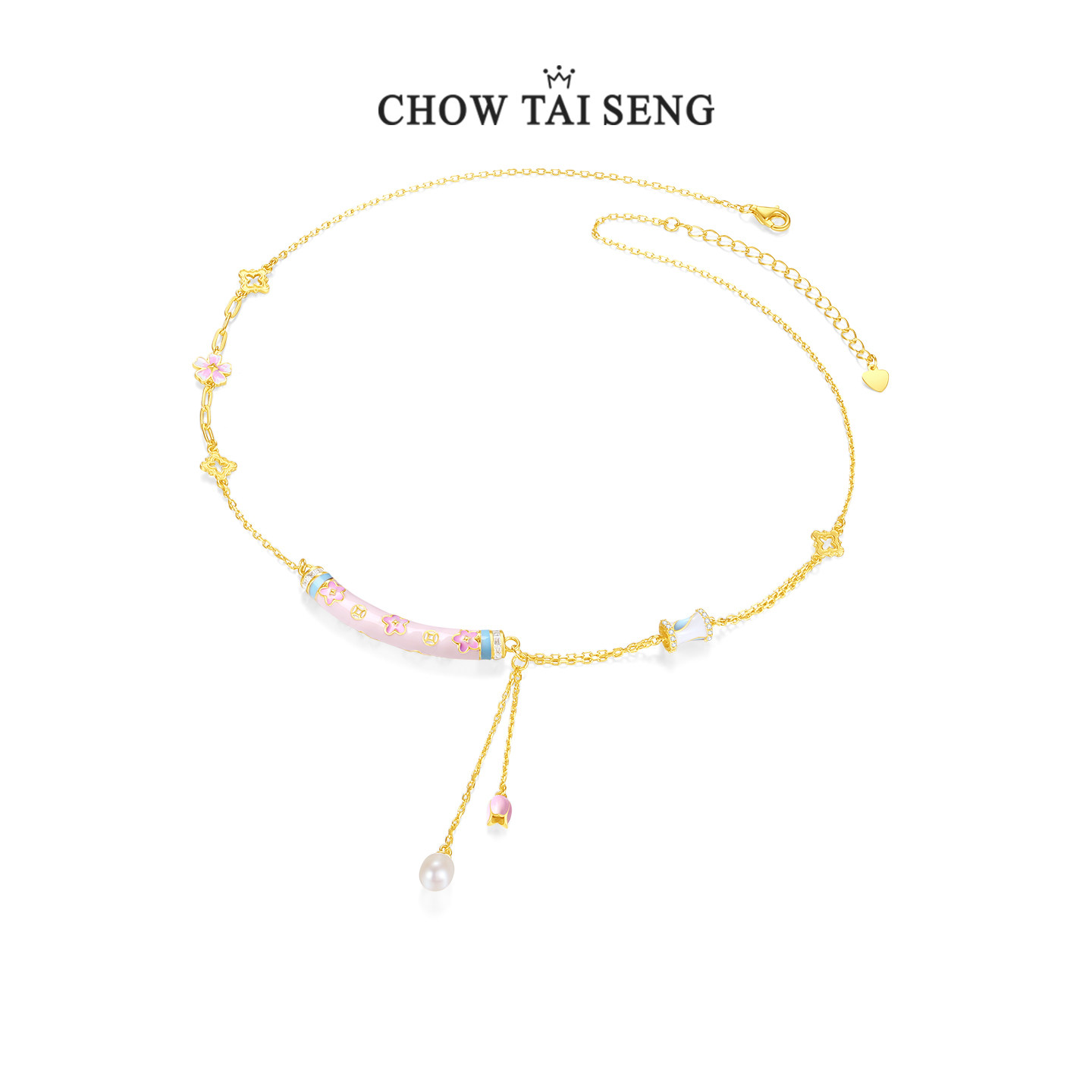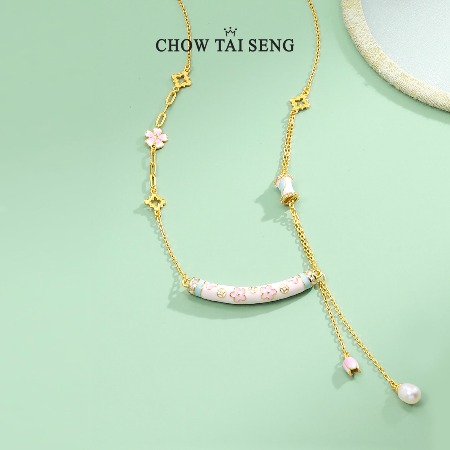 周大生有钱花珐琅项链S925纯银女轻奢设计感首饰品送女友生日礼物
