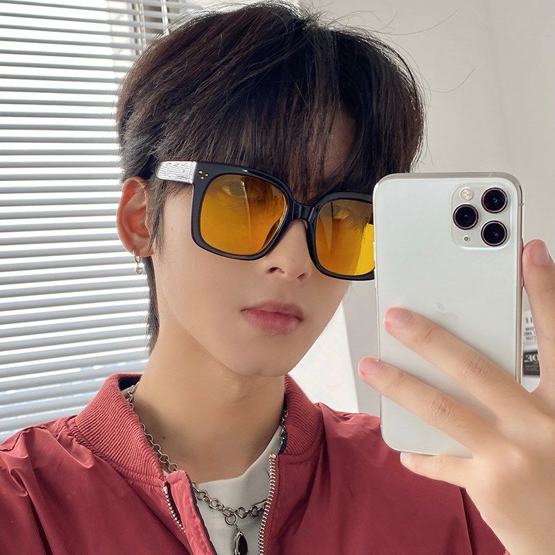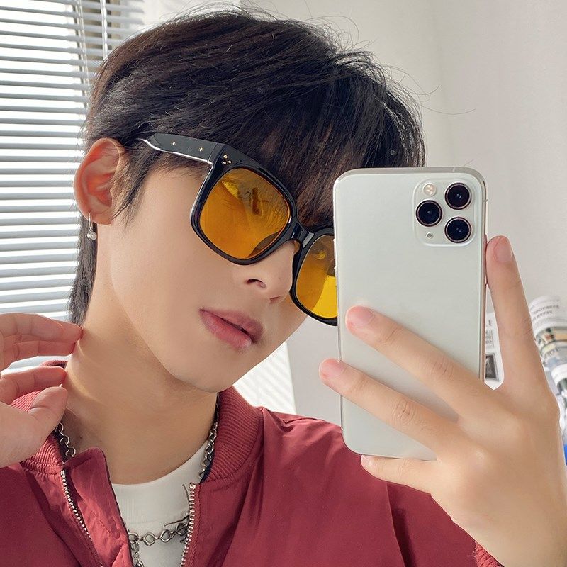 墨镜2021新款潮男级感网红大框复古黄色太阳眼镜女大脸显瘦街拍
