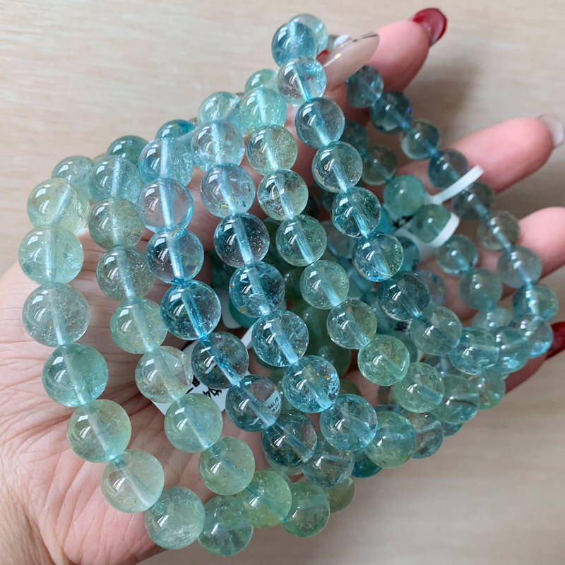 天然蓝绿色托帕石手链单圈水晶伦敦尼泊尔一物一图水晶手串饰品女