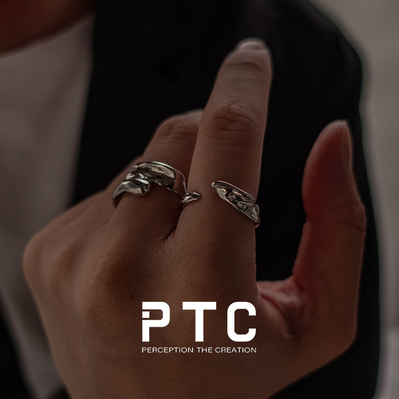 PTC S925纯银小众异形爪牙不规则设计暗黑风开口可调节戒指男女款