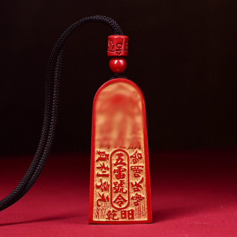 天然高含量朱砂正品原矿紫金砂五雷号令吊坠平安无事令牌男