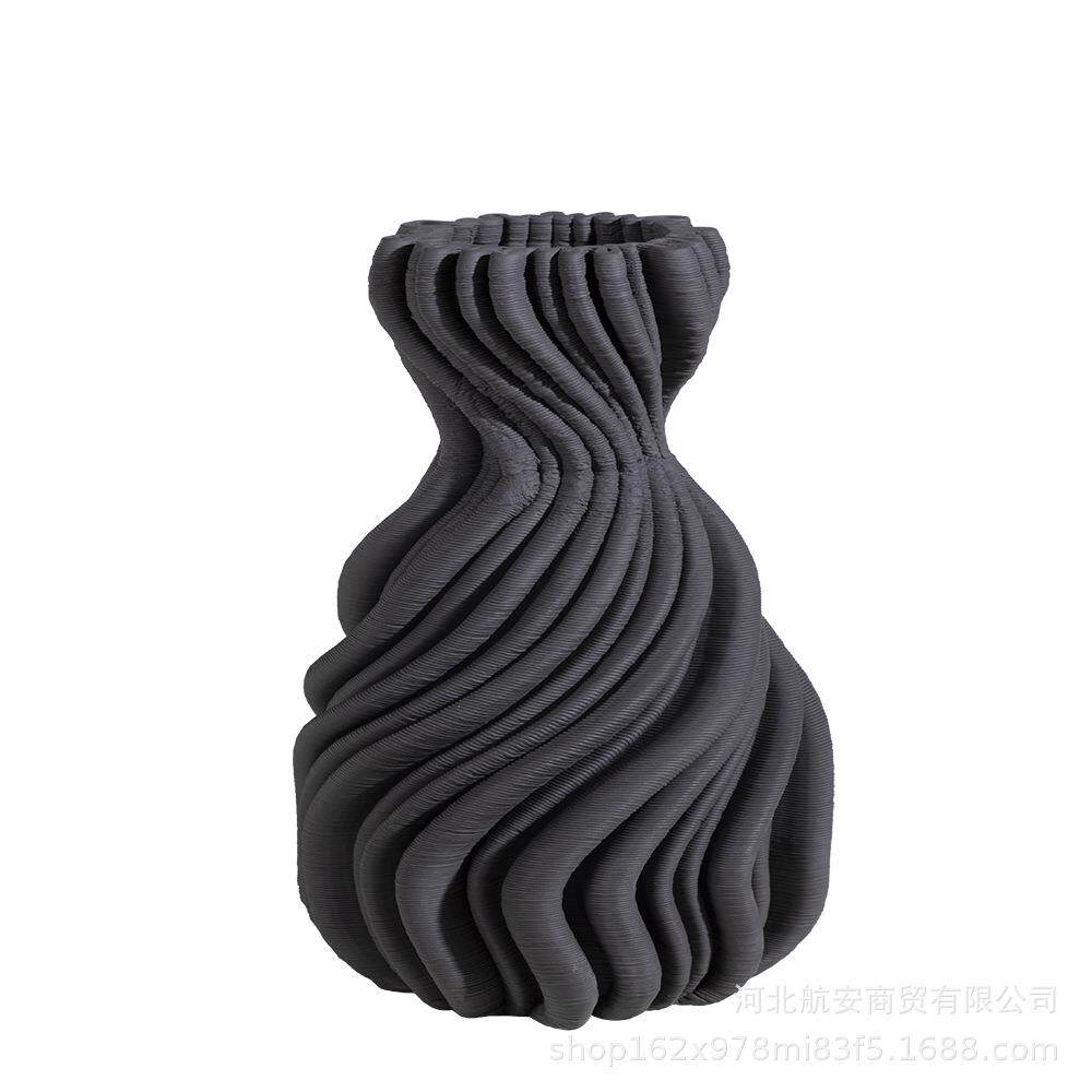 现代简约创意黑色纹理树脂花器花瓶样板房售楼处家居桌面茶几饰品