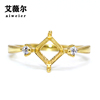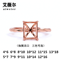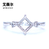 精工s925银戒指托公主方形托定制镶嵌宝石18k金5*5-6*6-7*7-8*8