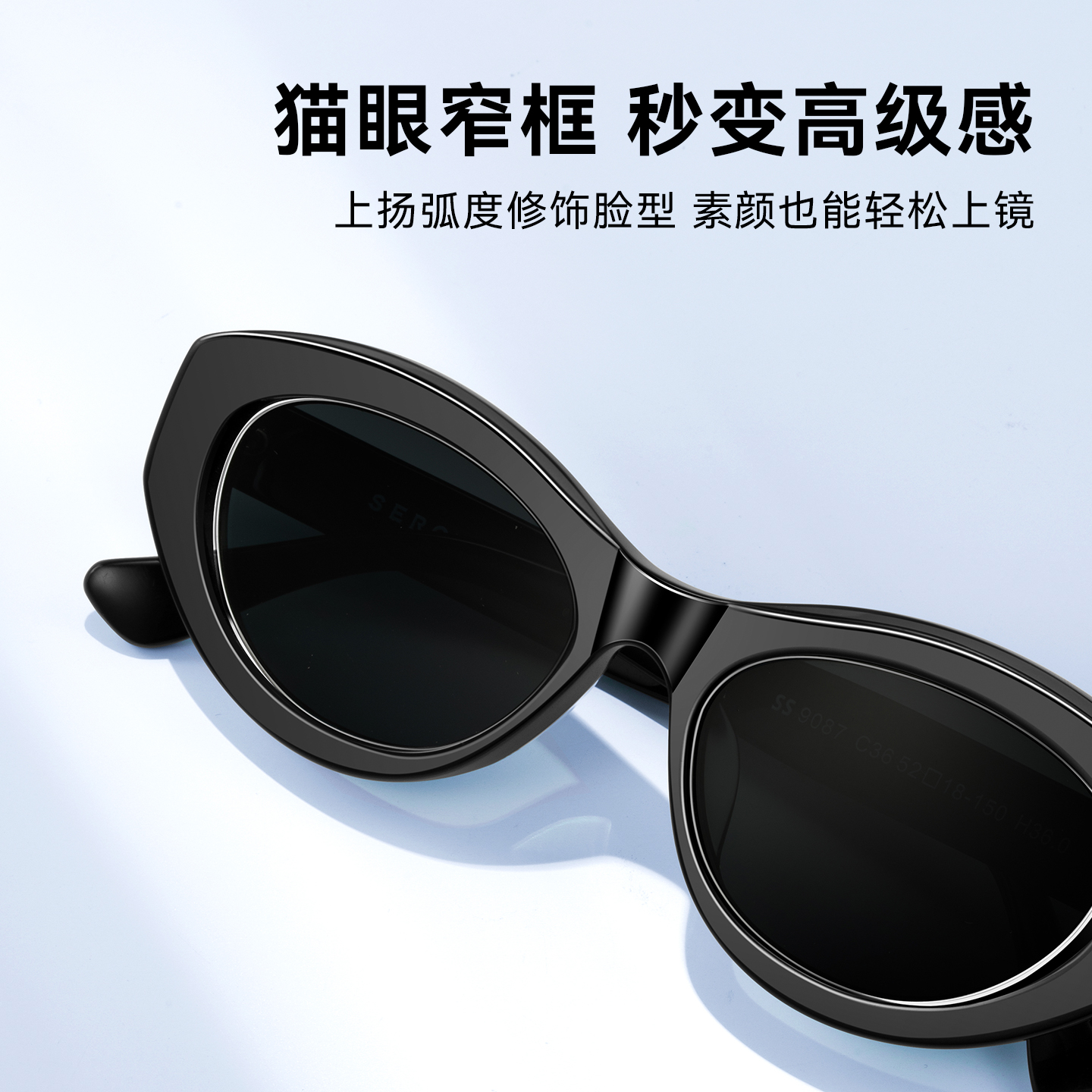白鹿同款施洛华猫眼墨镜女高级感窄框防紫外线太阳镜9087