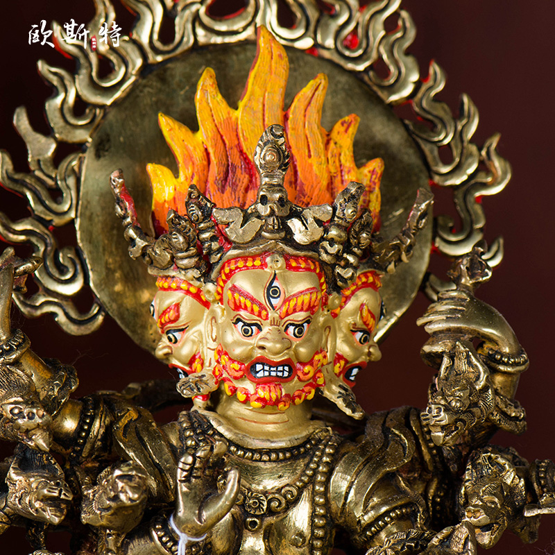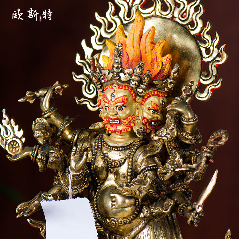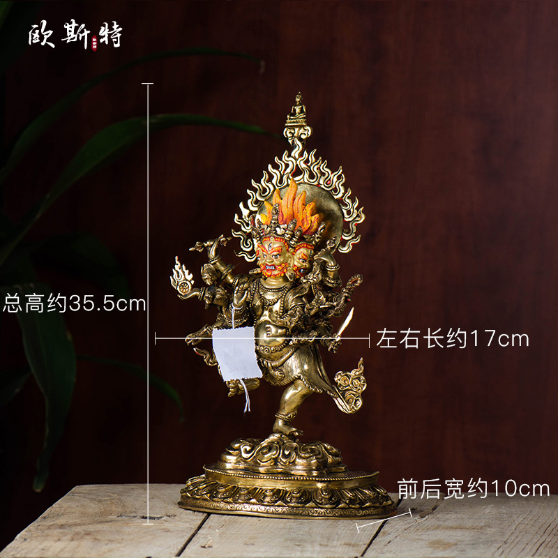 欧斯特尼泊尔手工10寸铜全鎏金玄关像摆件秽迹金刚像客厅家用铜像