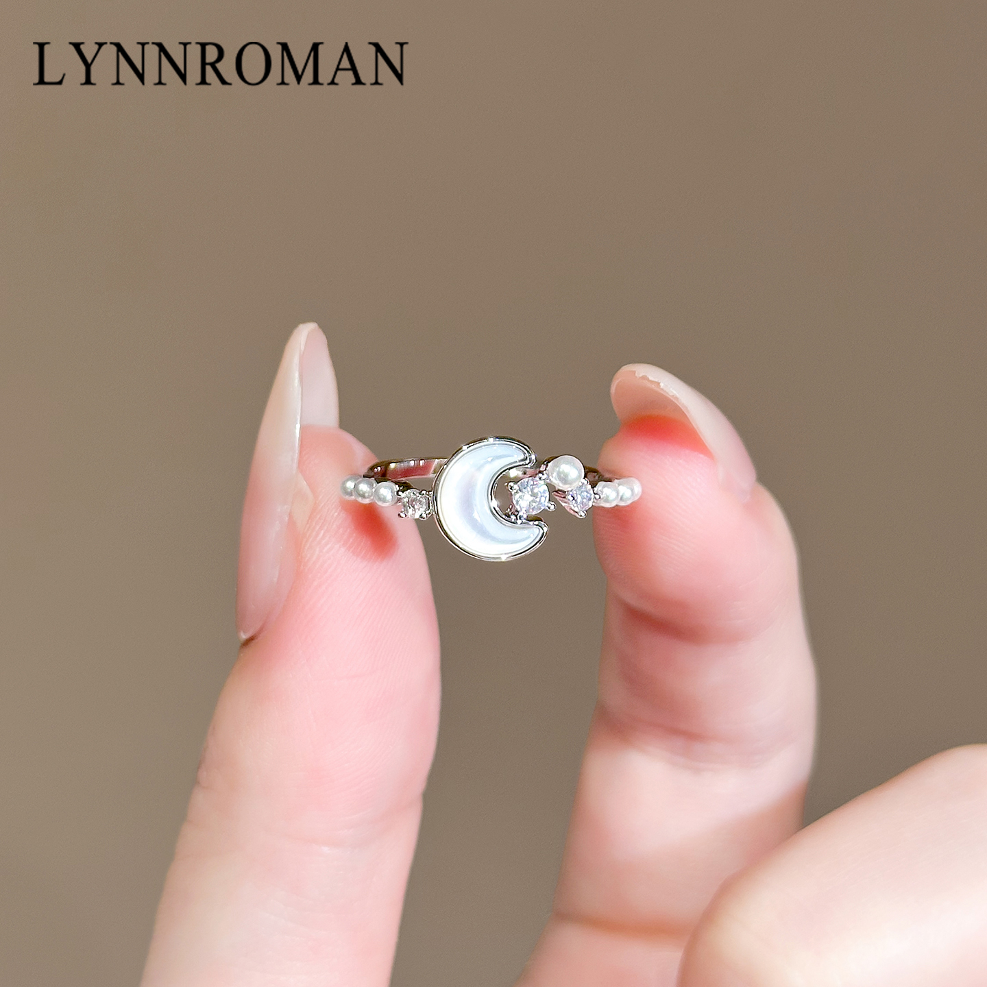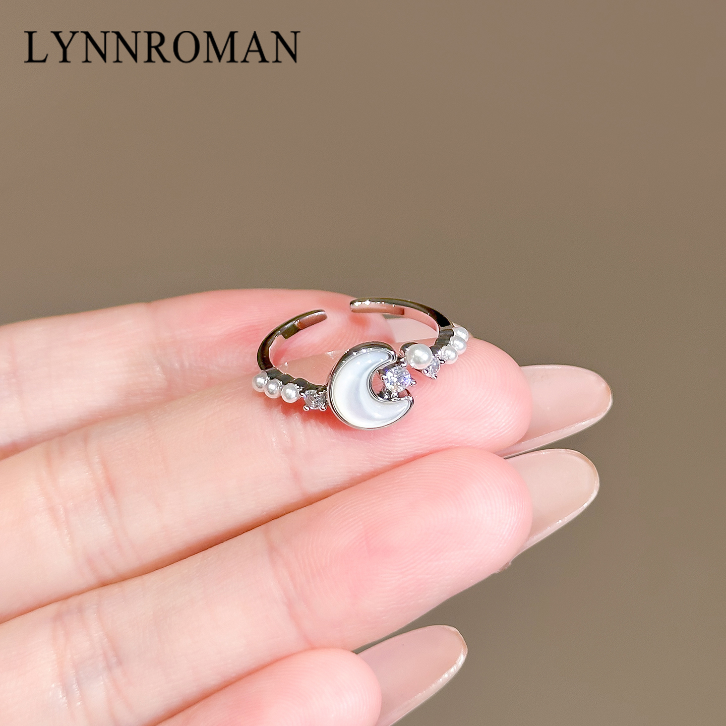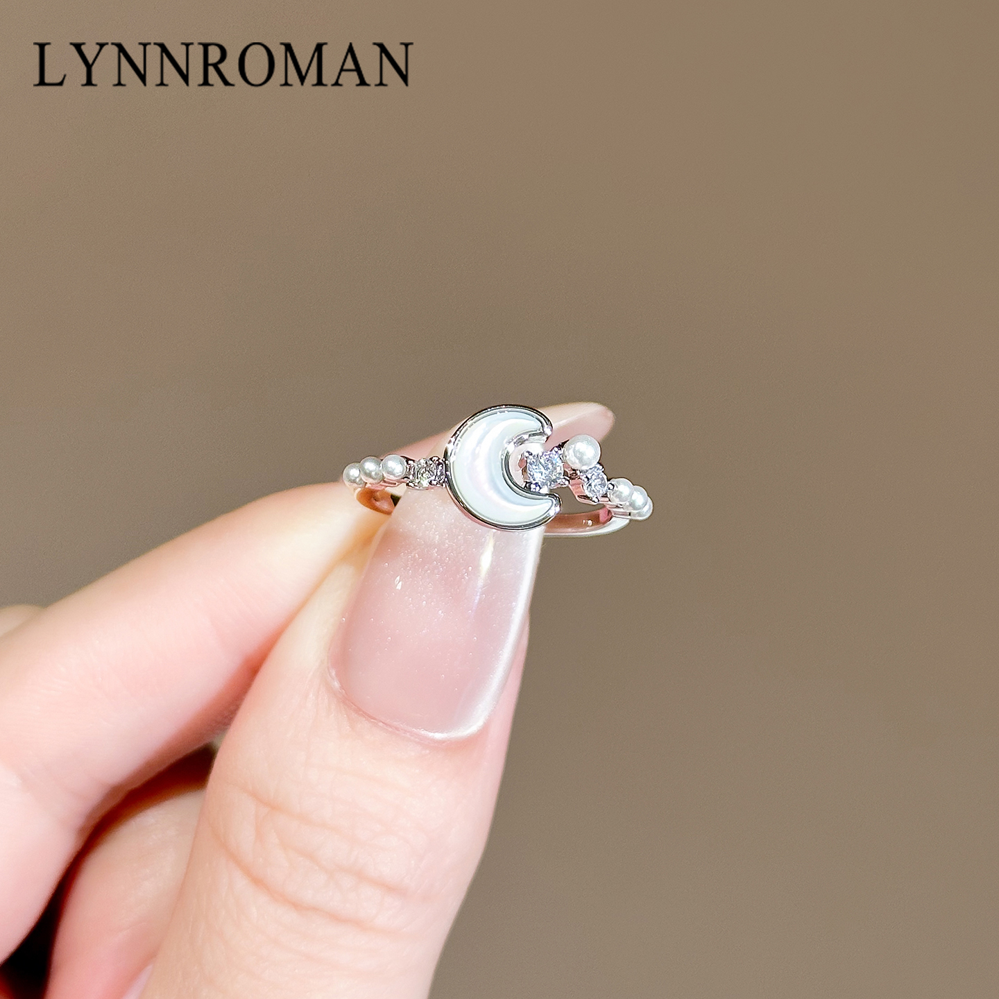 LYNNROMAN月亮珍珠戒指女款轻奢时尚开口设计高级感精致水晶指环