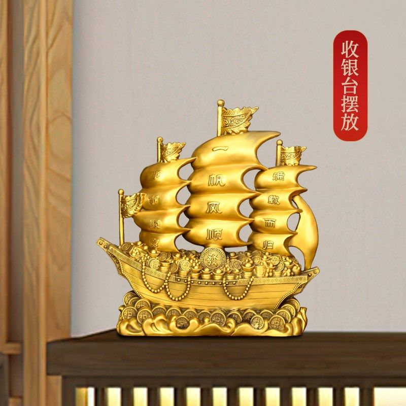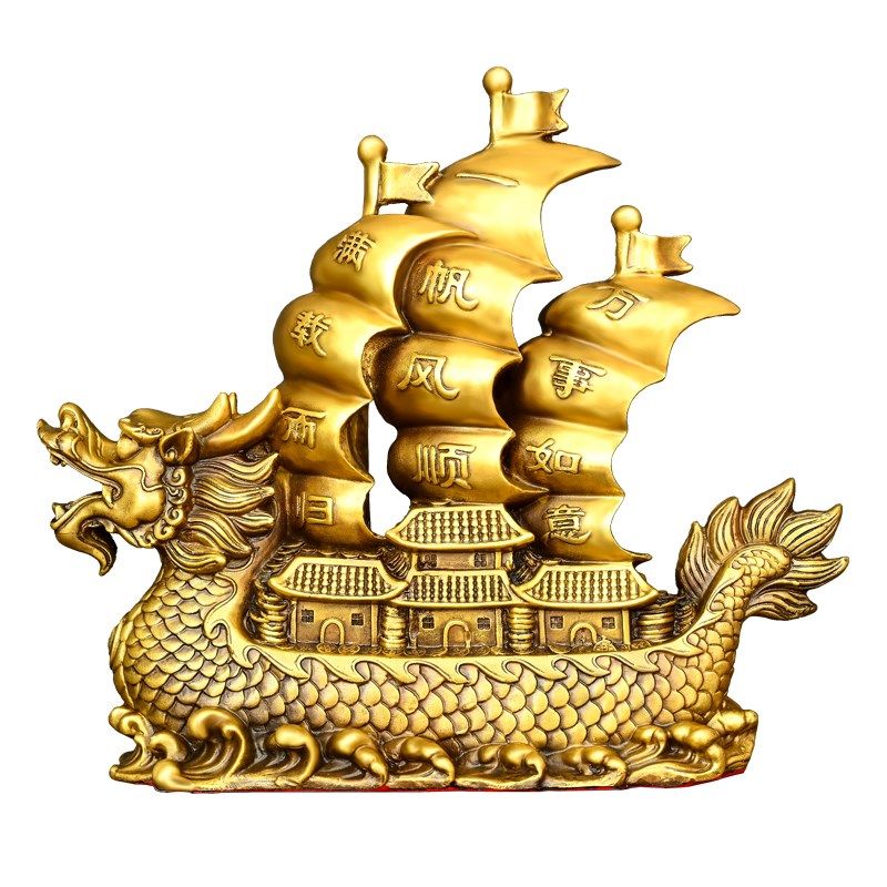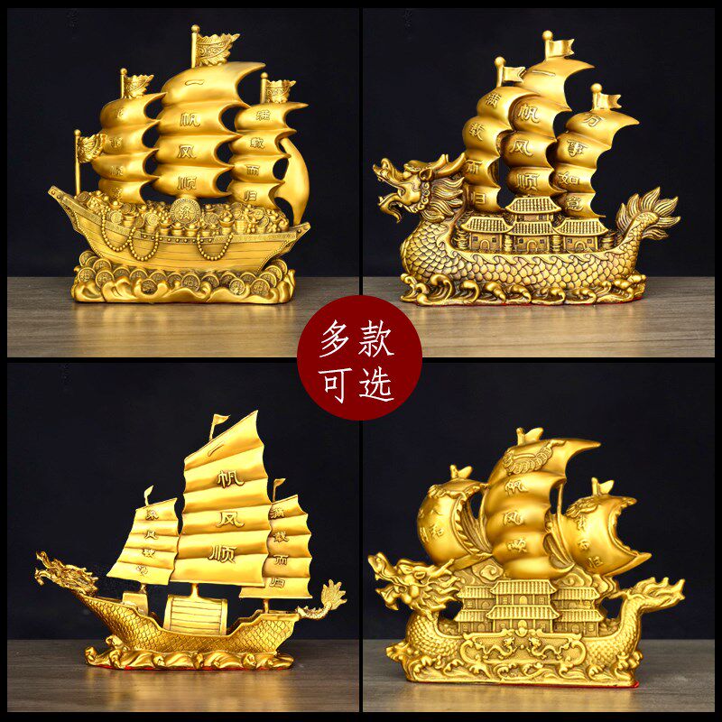 黄铜一帆风顺龙船帆船摆件家用店铺办公室装饰品满载而归龙头船