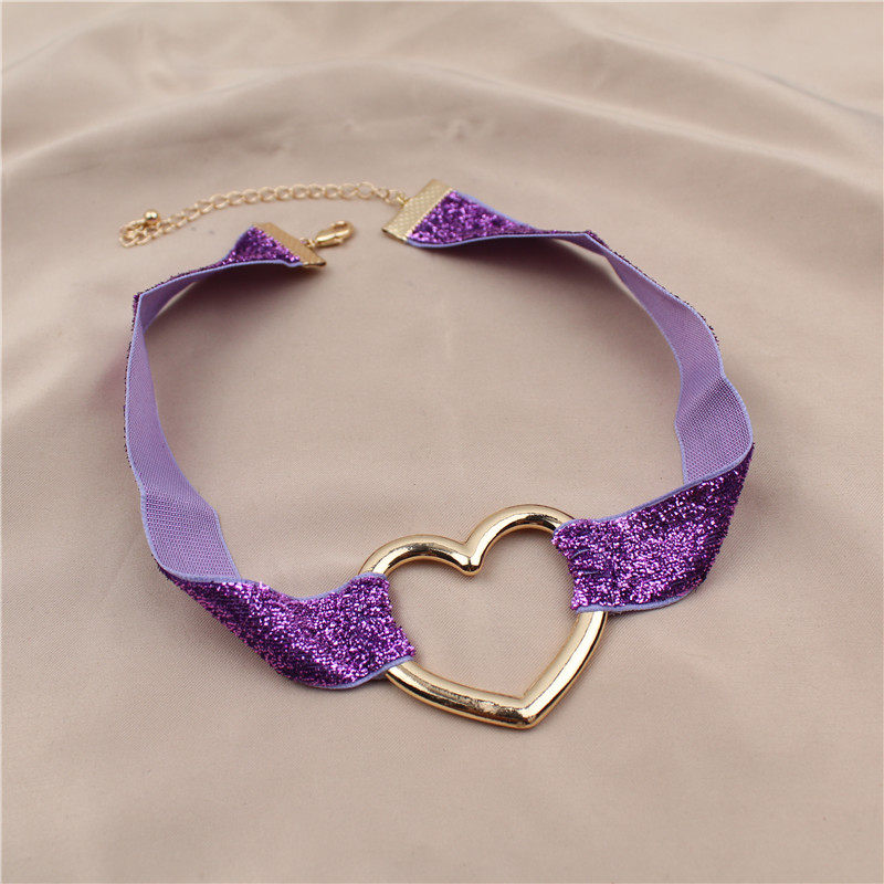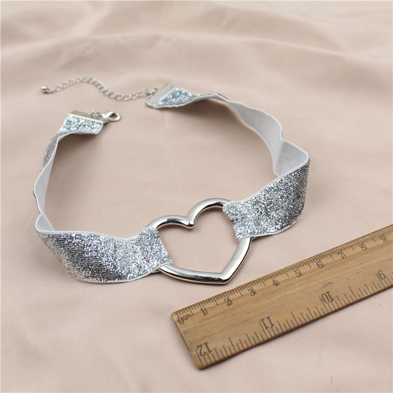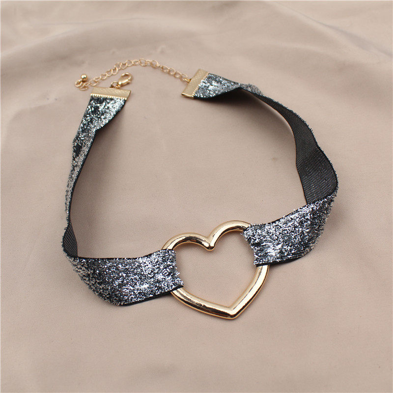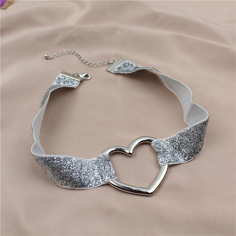 日韩版新款choker项链亮晶晶缎带爱心形潮流气质卡脖项链颈链配饰
