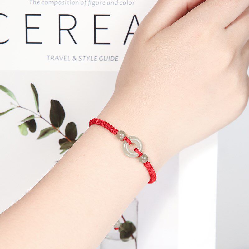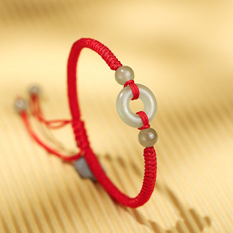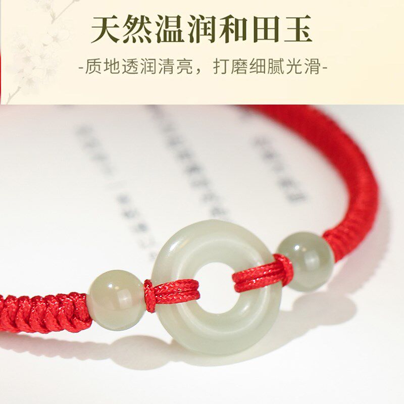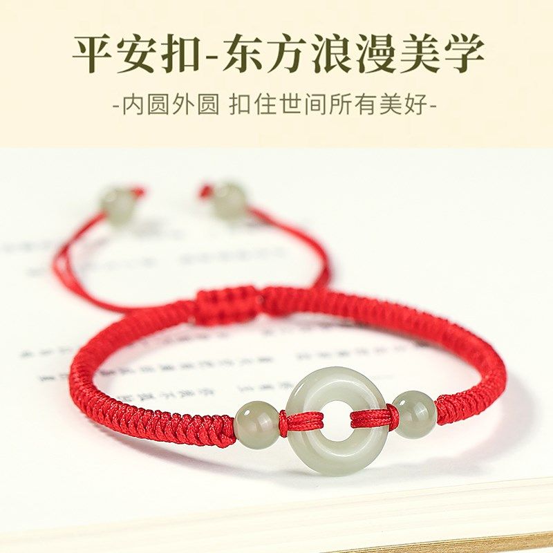 和田玉平安扣手链女本命年转运珠红绳情侣手绳男款V七夕送女友礼