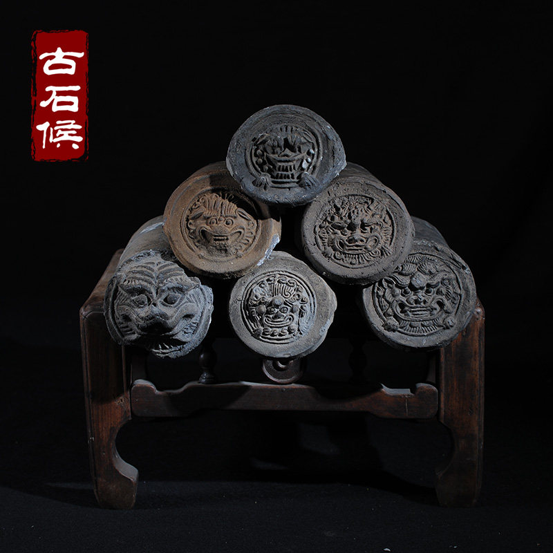老瓦当雕花瓦片砖雕带花兽纹兽头图形明清老瓦茶桌摆件收藏老货