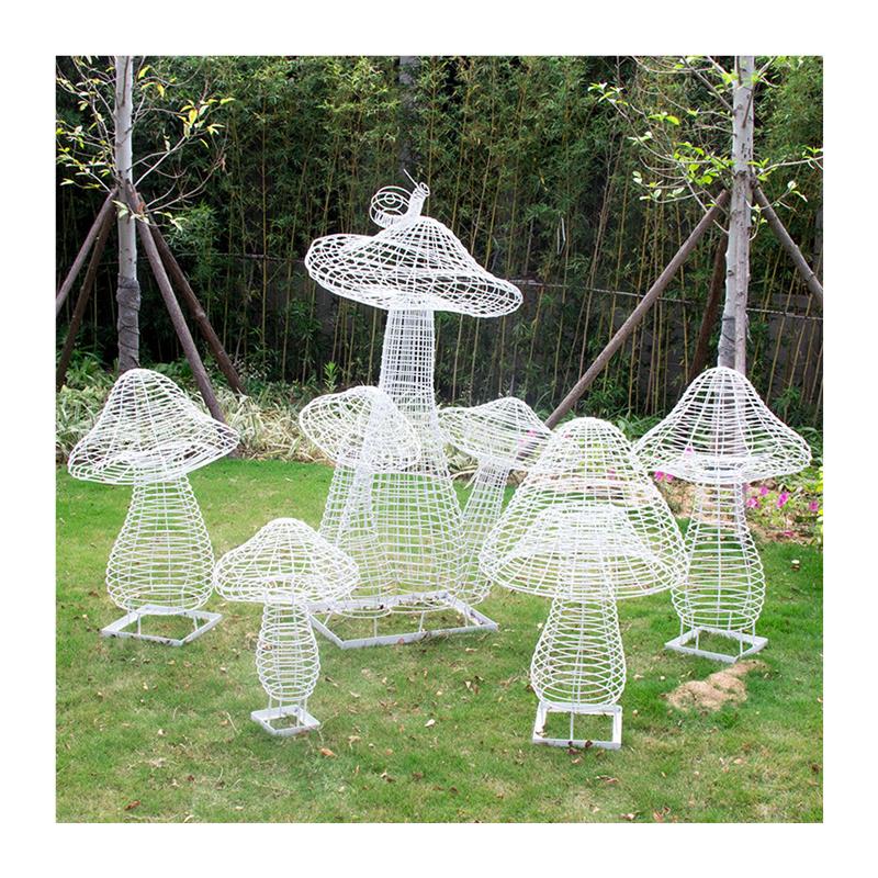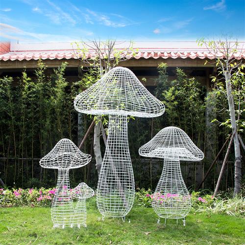 户外不锈钢镂空蘑菇雕塑公园林售楼草坪铁艺发光植物景观装饰摆件