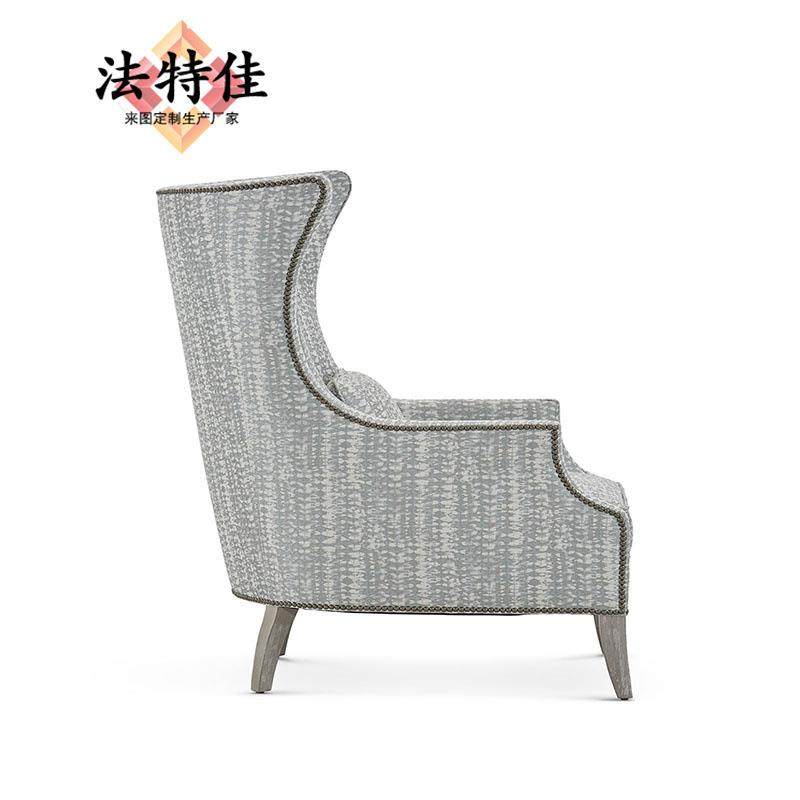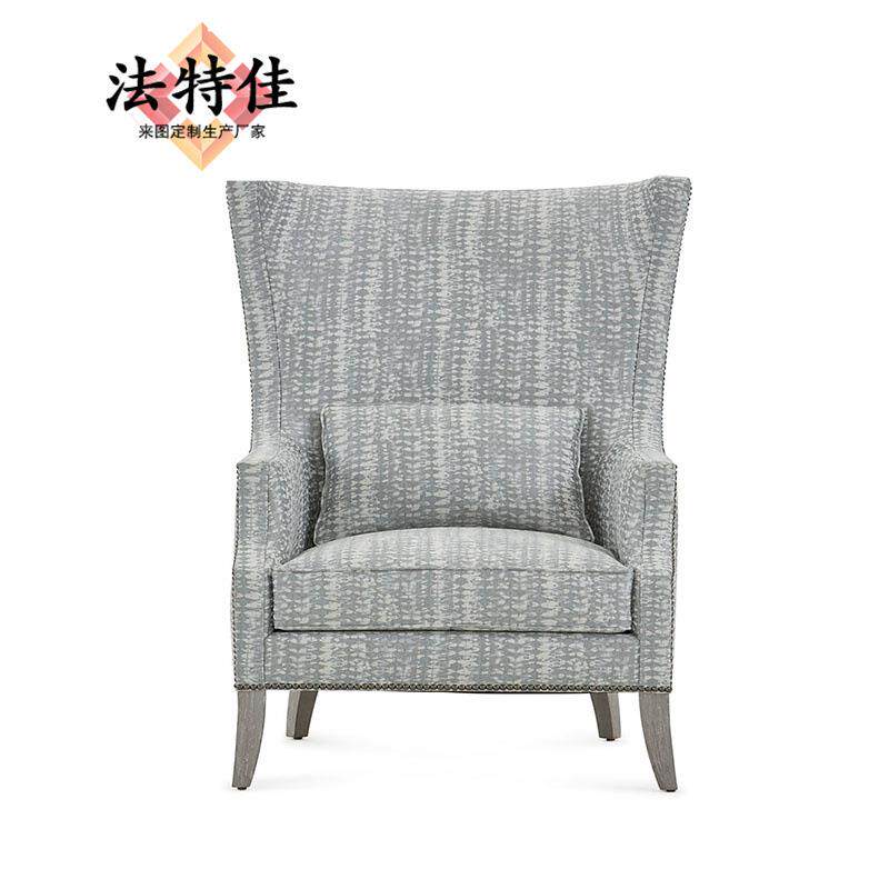 美式现代全实木布艺单人沙发家用客厅老虎椅卧室简约舒适沙发椅