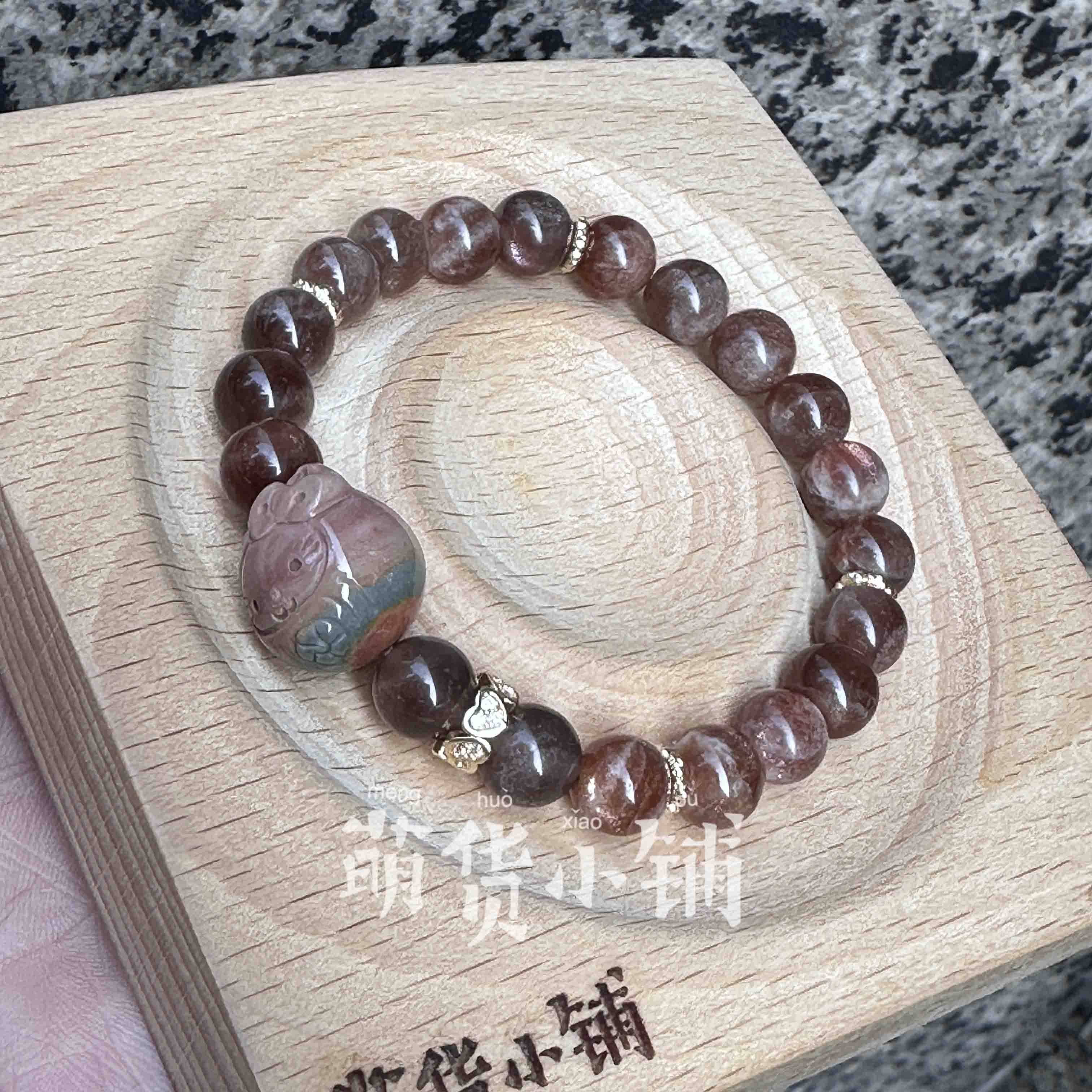 萌货小铺原创手作DIY阿拉善玛瑙俏色kitty达摩黑金骨干手链手串