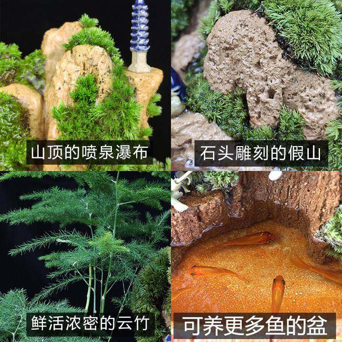 真花真草招财假山流水喷泉摆件造景植物小型鱼缸池客厅装饰品礼品