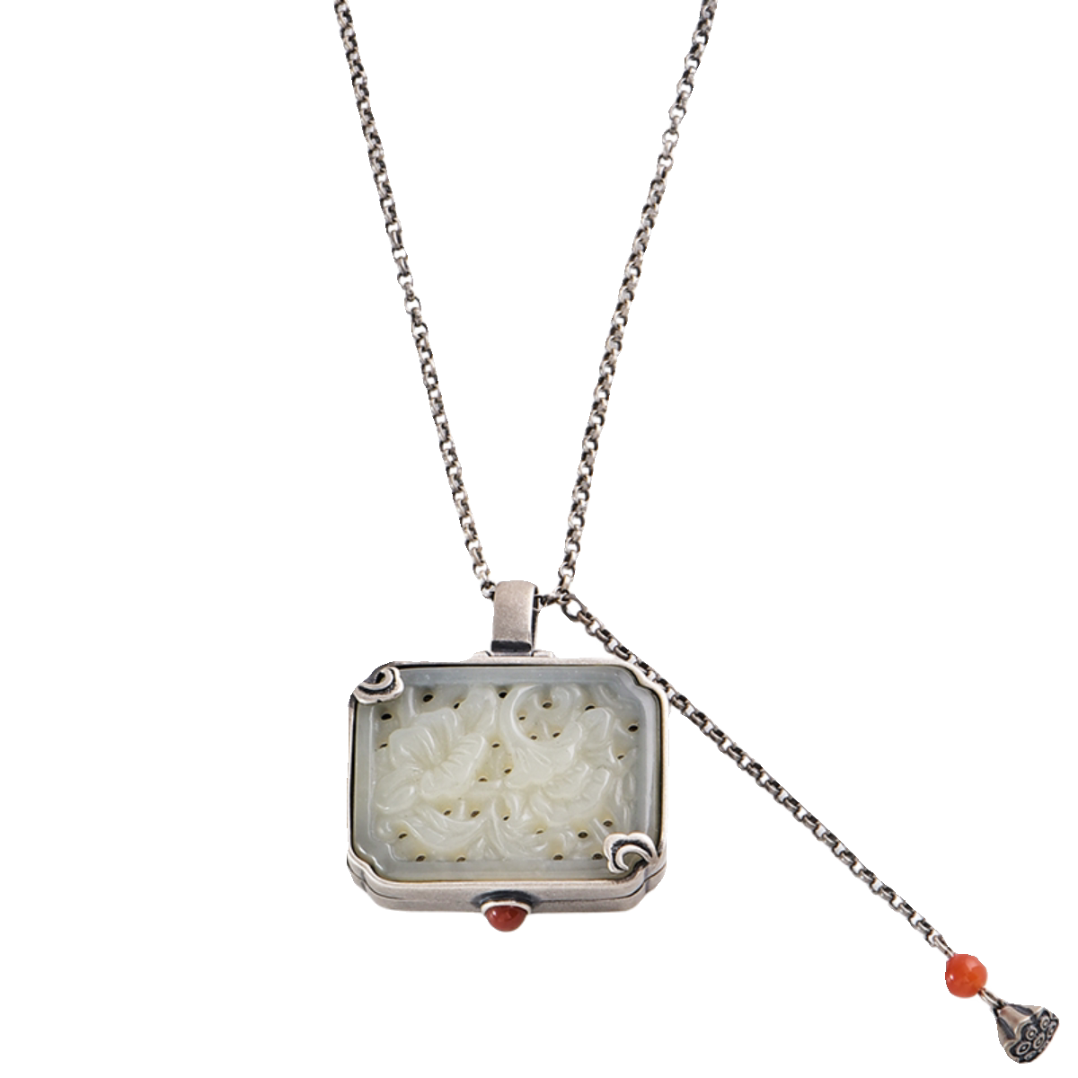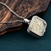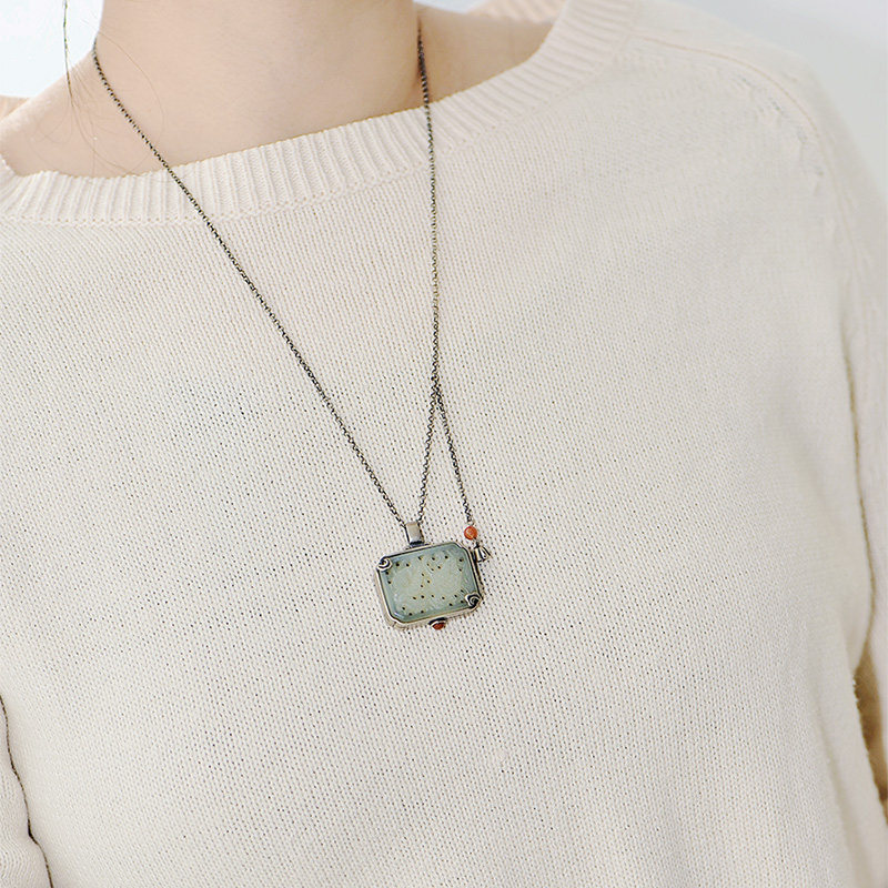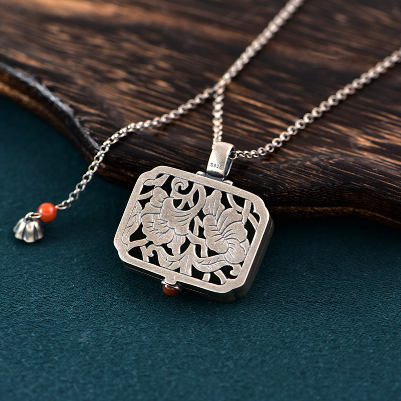 灵石创艺时尚纯银项链女款复古做旧民族风镶嵌和田玉可打开银吊坠