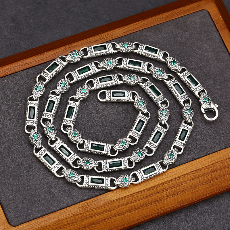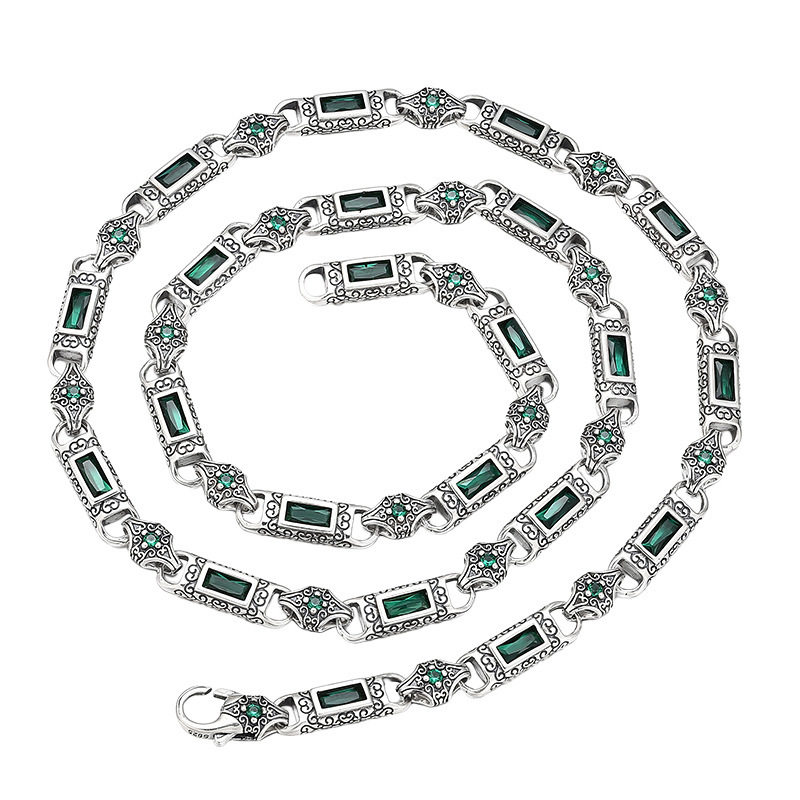 新款复古项链土耳其风镶绿色锆石唐草纹项链潮流个性