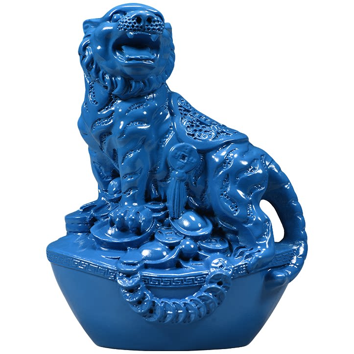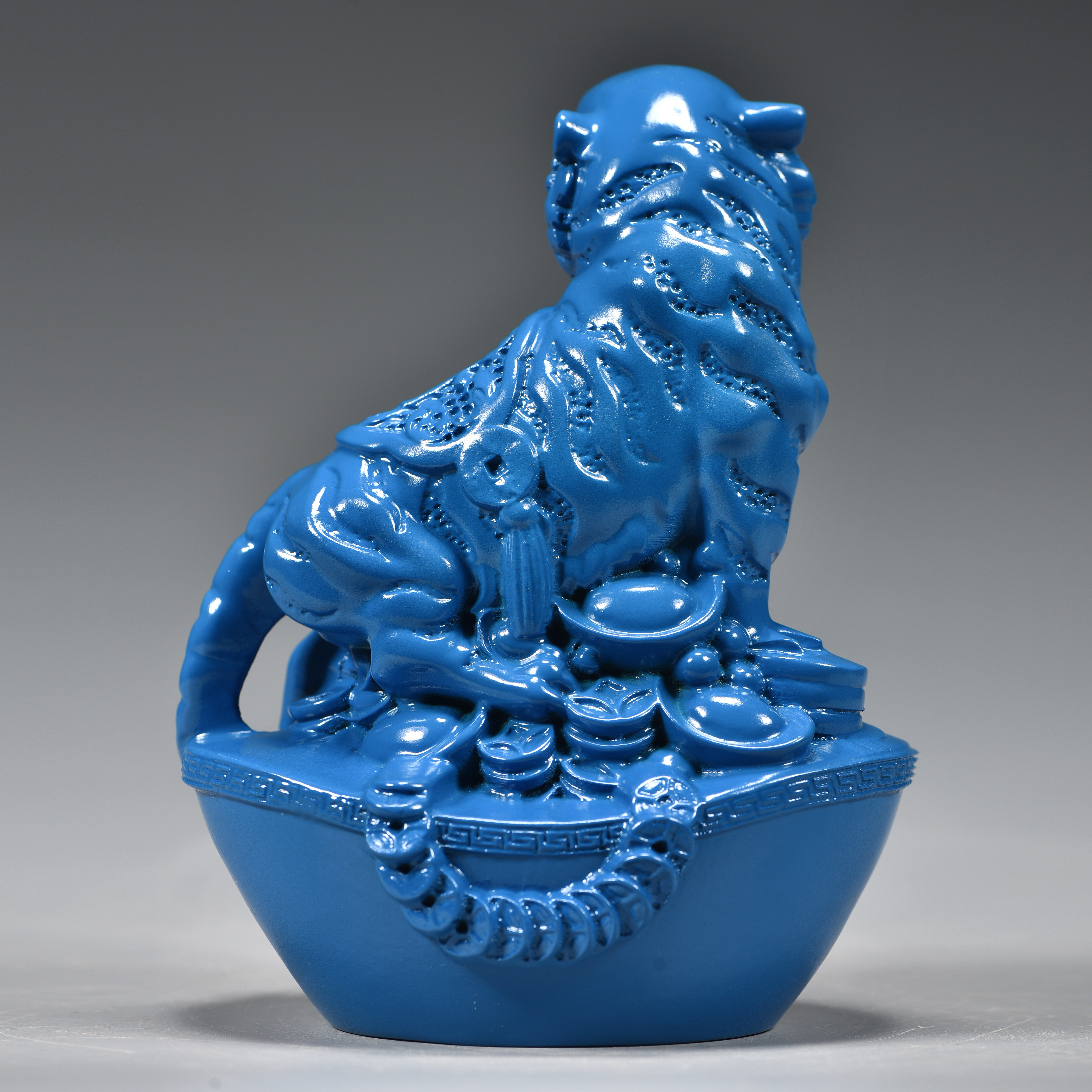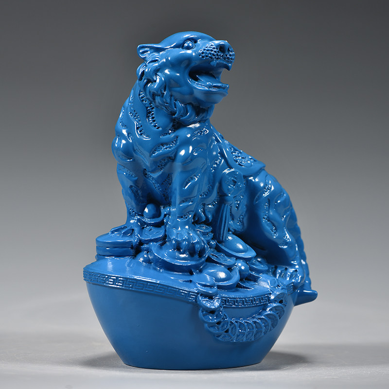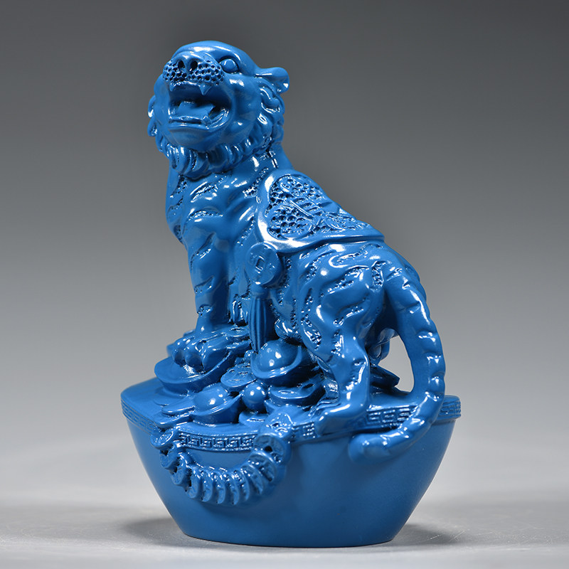 蓝色实木老虎摆件木质雕刻十二生肖木头虎吉祥物装饰木制工艺品