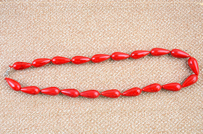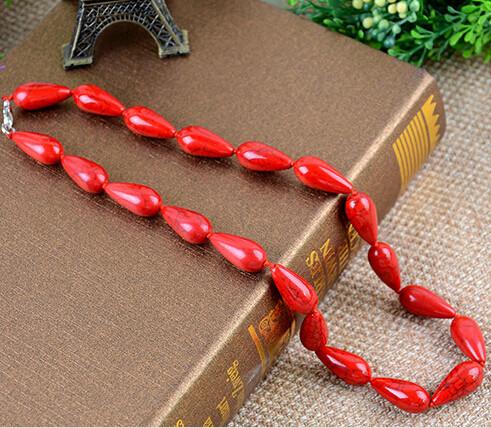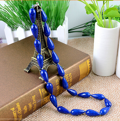 原创中国民族风项链 时尚复古手工红松石项链毛衣链女水滴款蓝红