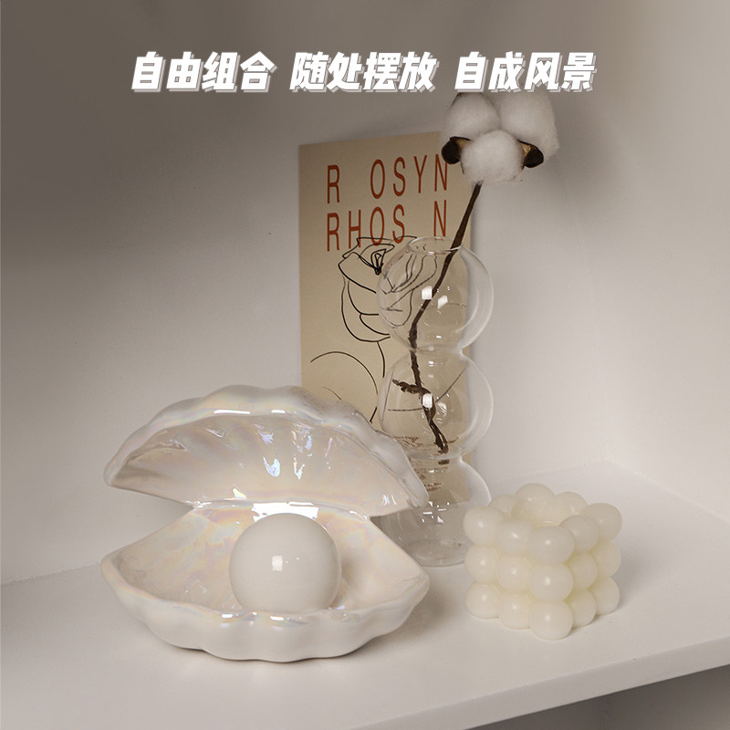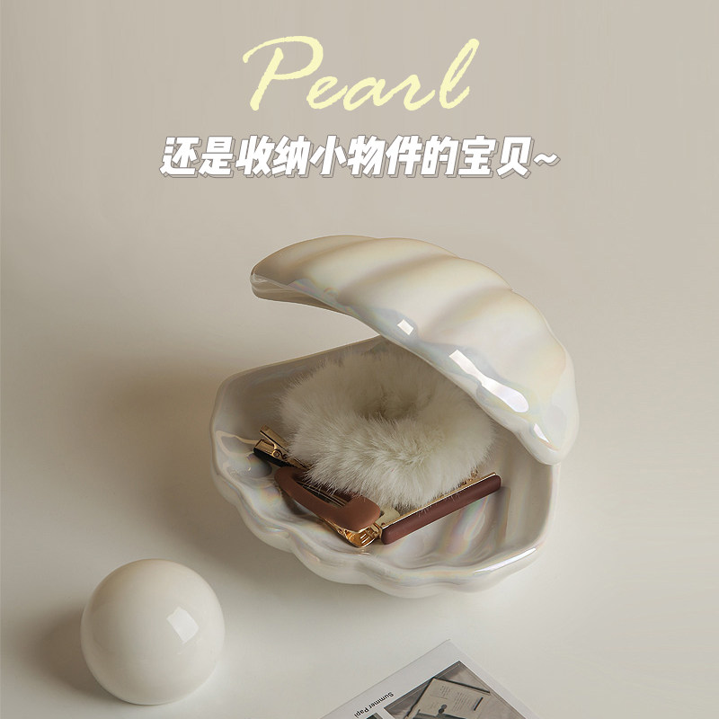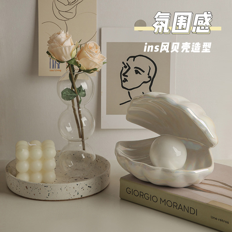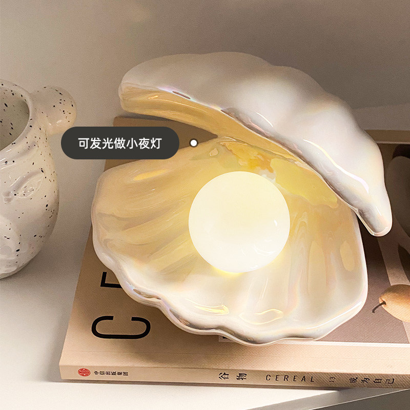贝汉美创意贝壳小夜灯卧室北欧桌面装饰摆件首饰收纳盘少女心礼物