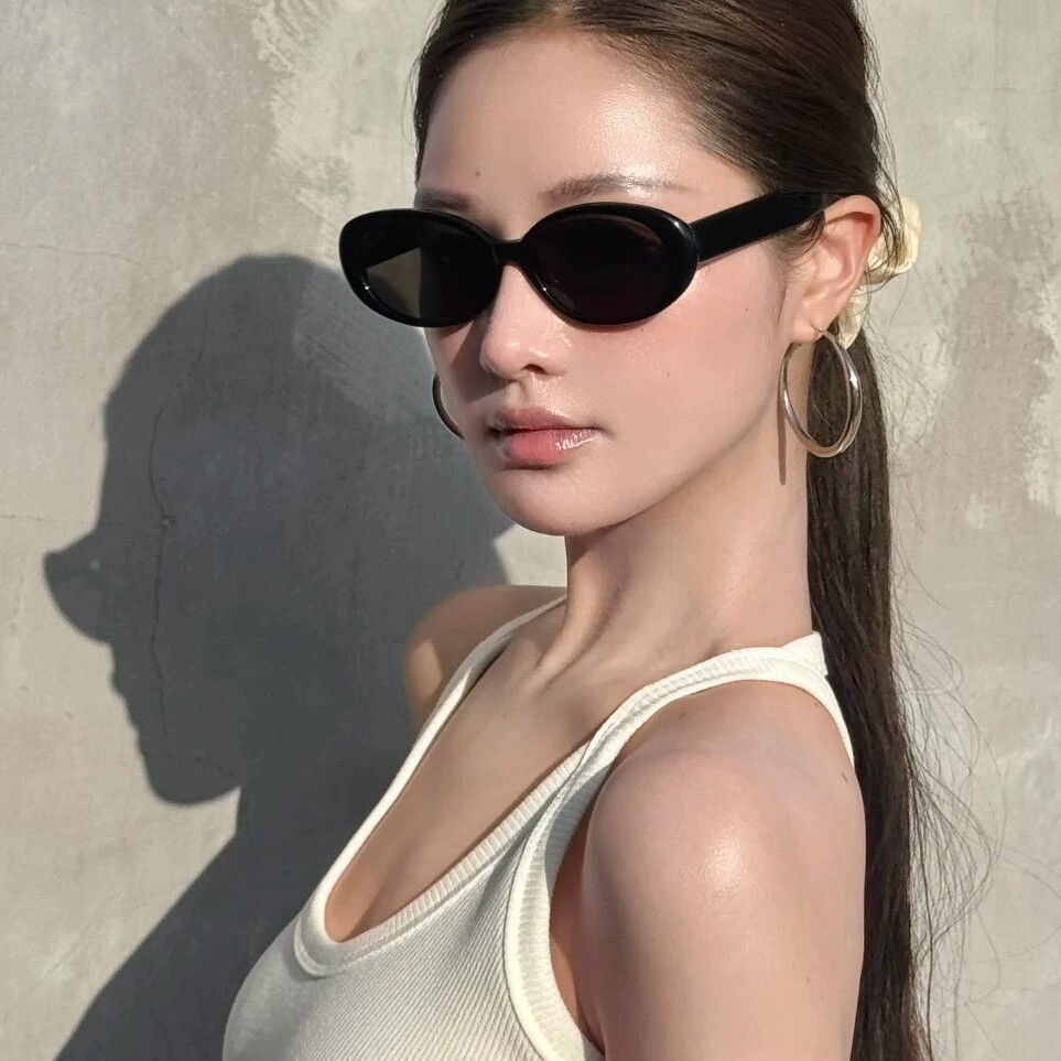 热巴同款2026新款太阳镜板材墨镜女复古椭圆大框nnel果冻镜配近视