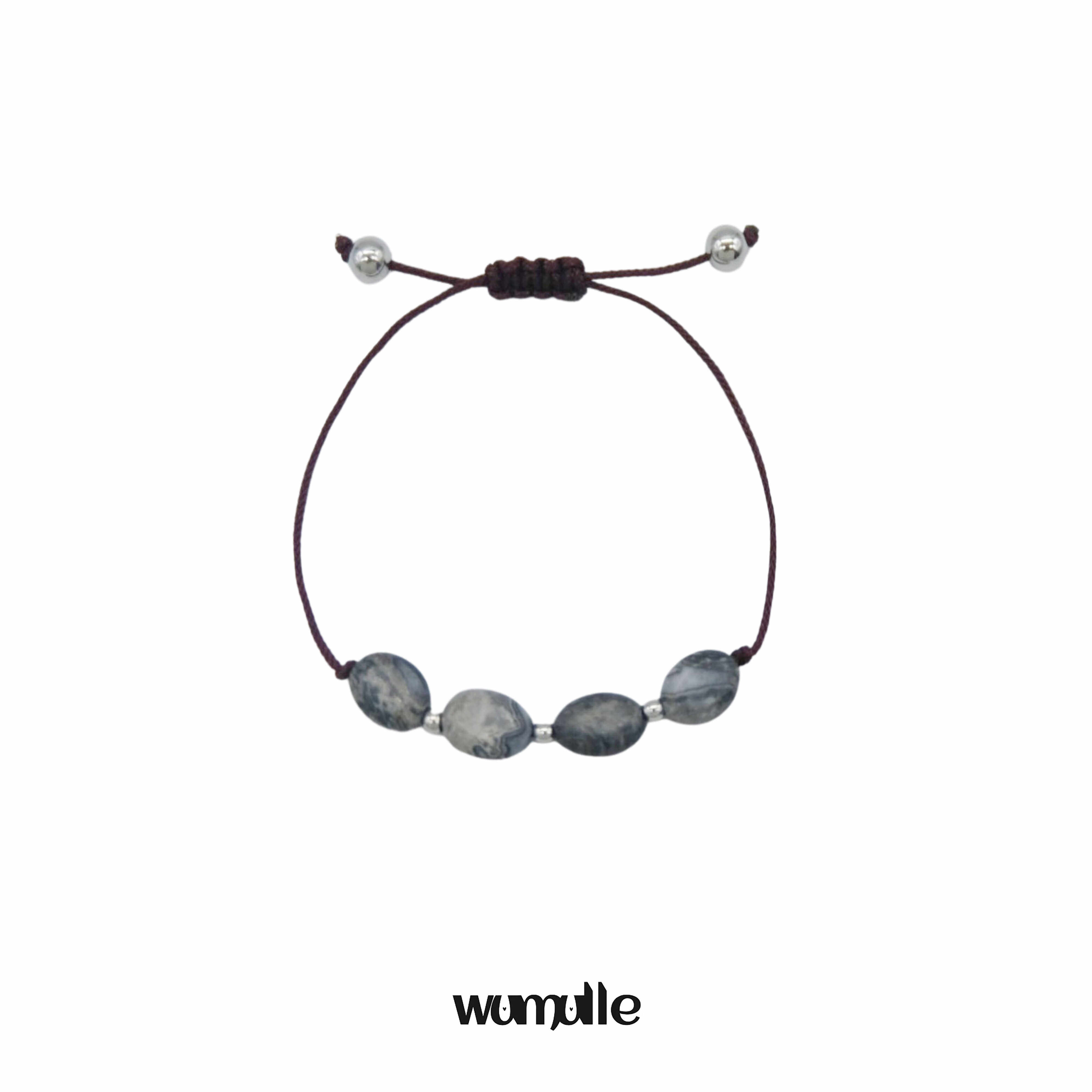 wumulle 玛瑙手绳水晶石手链中性百搭简约地图石 手串可调节自制