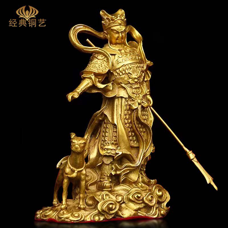 纯铜二郎神真君神l像站像家居玄关桌面摆件二郎显圣真君杨戬哮天