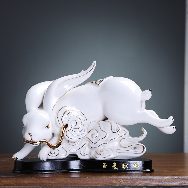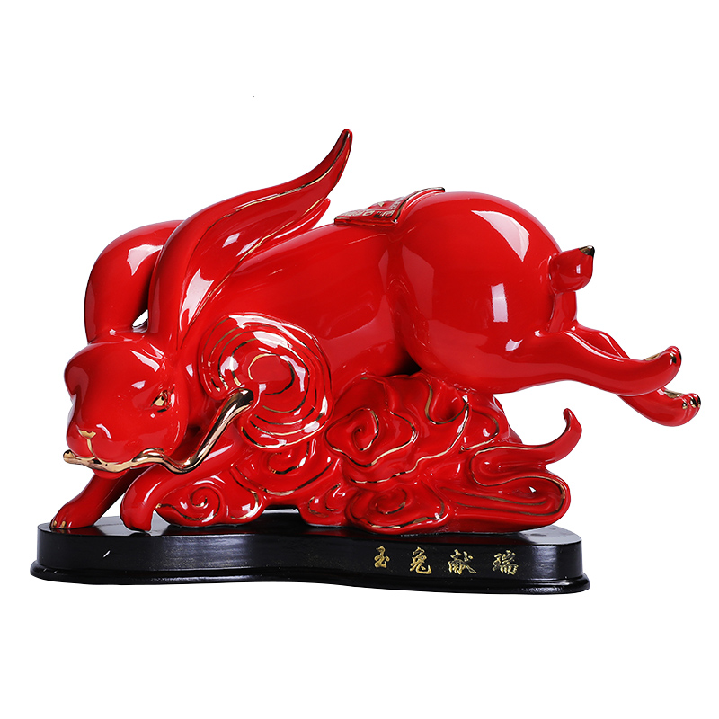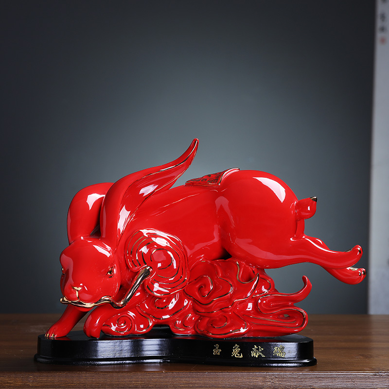 现货速发红色陶瓷大号十二生肖兔摆件可爱兔招财瓷器玉兔摆设工艺