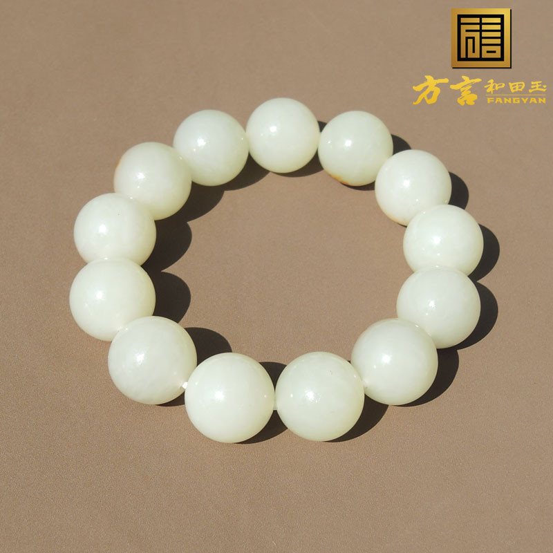 嗨翻天方言和田玉新疆羊脂白玉红沁皮颗颗带皮圆珠16mm籽料手串O8