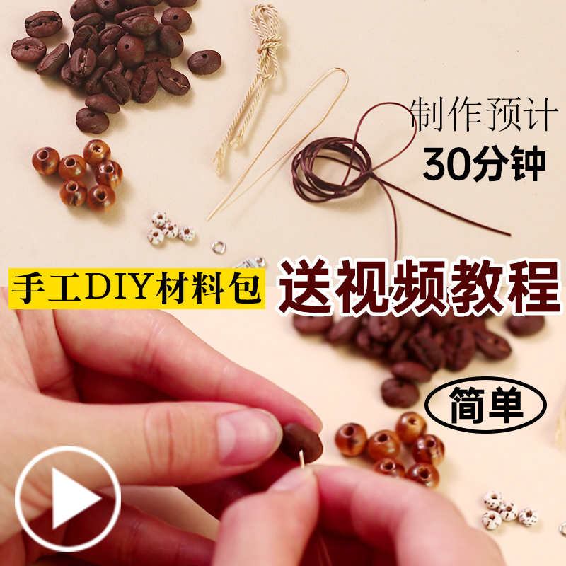 diy打孔咖啡豆手串材料包原创手工串珠装饰配件散珠咖啡手链饰品