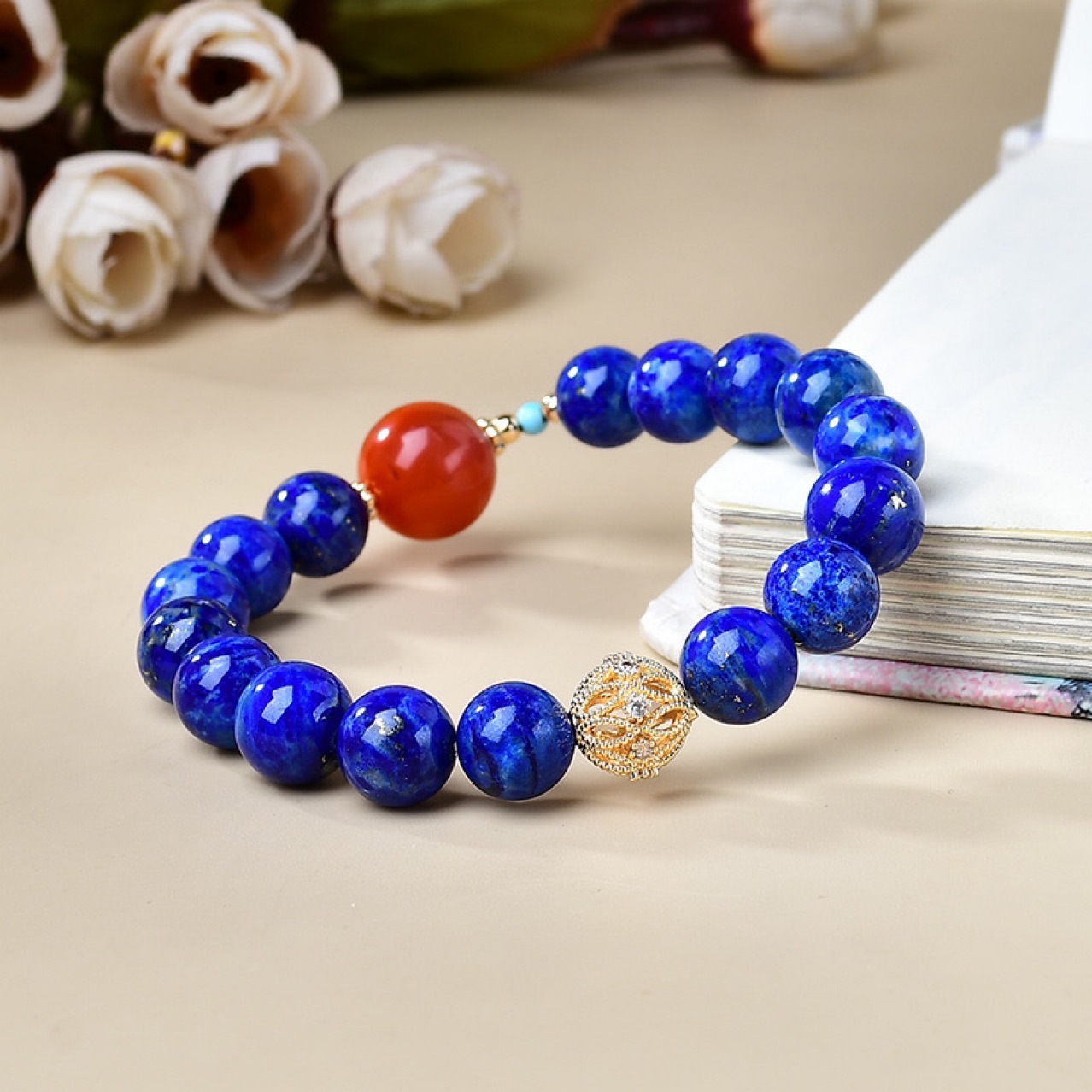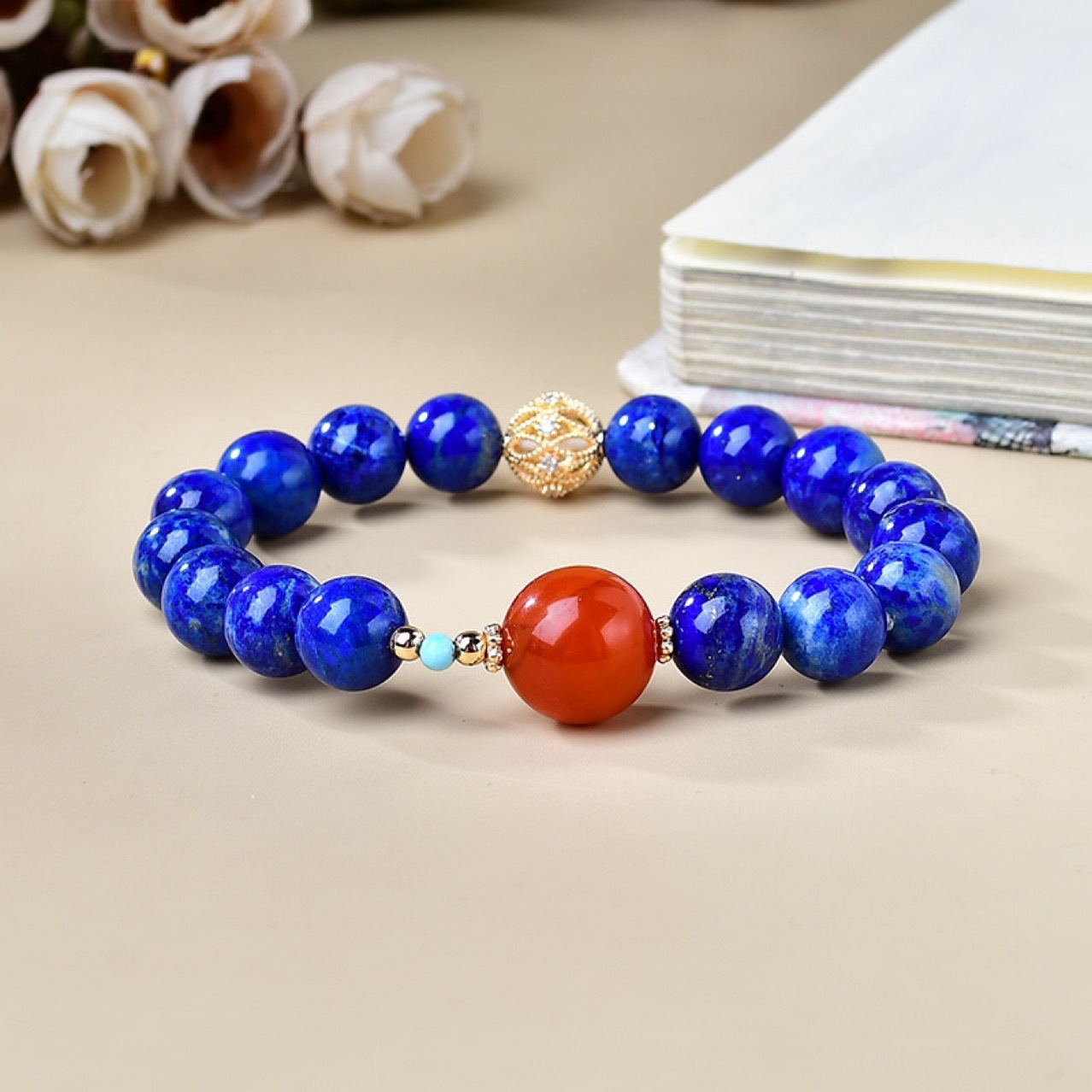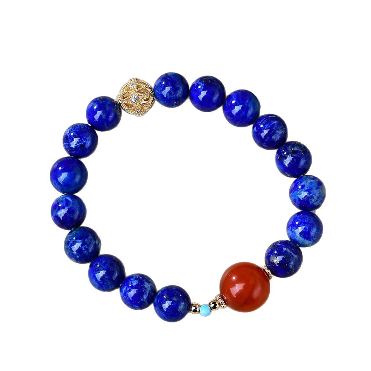9.5mm天然阿富汗青金石手链 搭配13mm南红藏式配件简约百搭手串