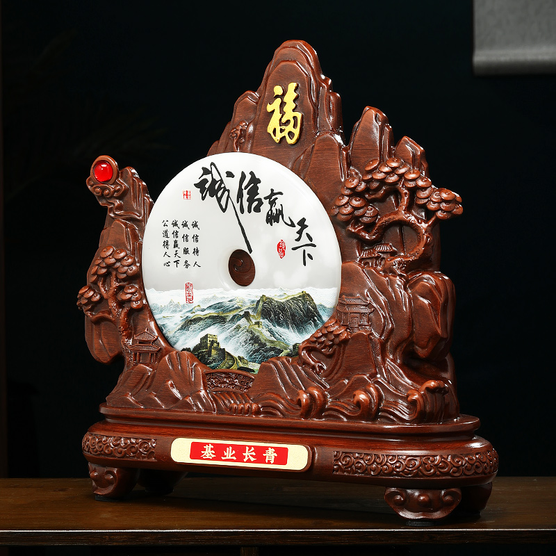 速发基业长青玉石平安扣摆件招财客厅办公室酒柜大气装饰公司开业
