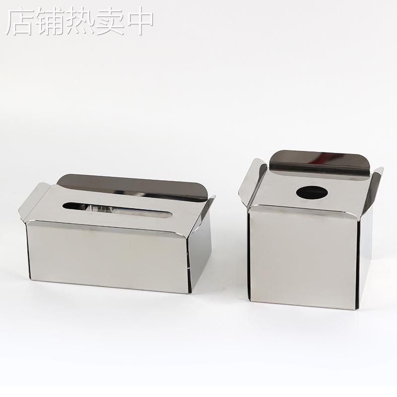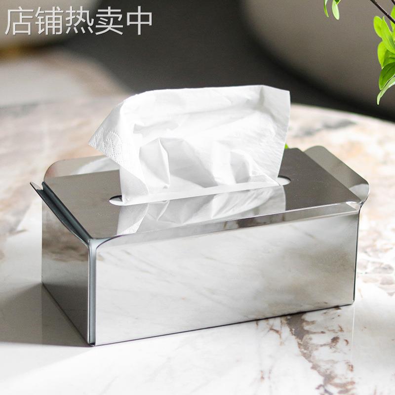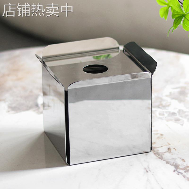 北欧艺术设计师收纳纸巾盒摆件创意样板房桌面不锈钢抽纸盒装饰品